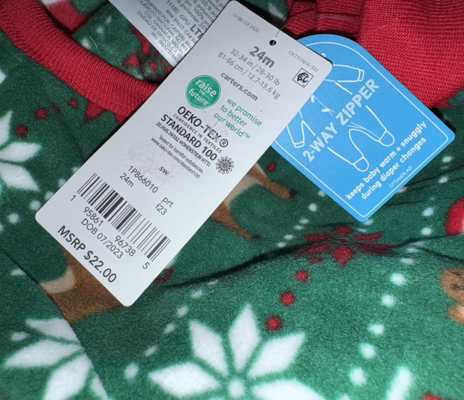 CARTER'S FAIR ISLE CHRISTMAS FOOTED FLEECE SLEEPER Boys Size 24 Months NWT
