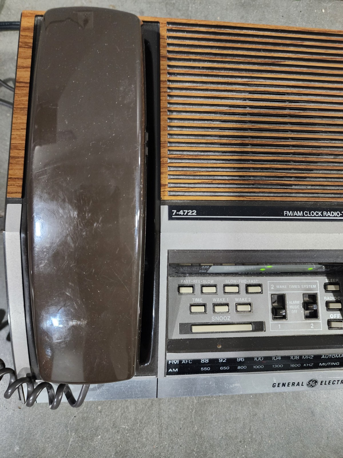 Vintage General Electric GE Clock Radio Telephone Brown 7-4722D Tested Works