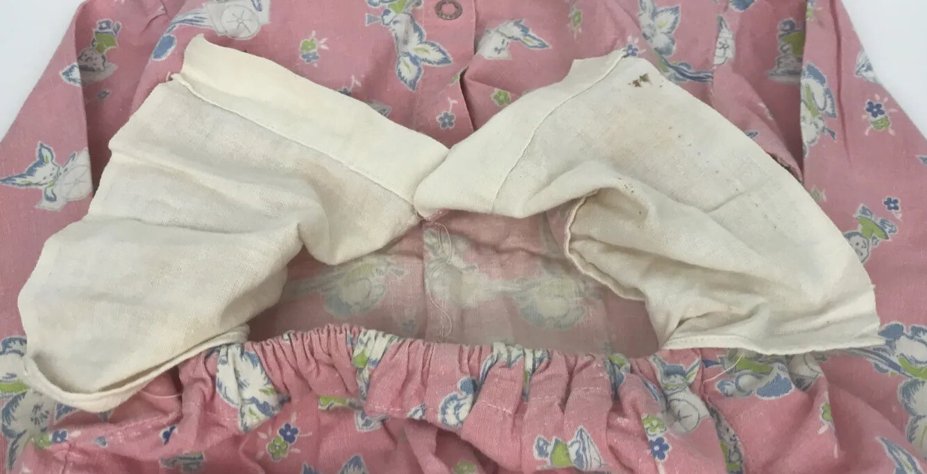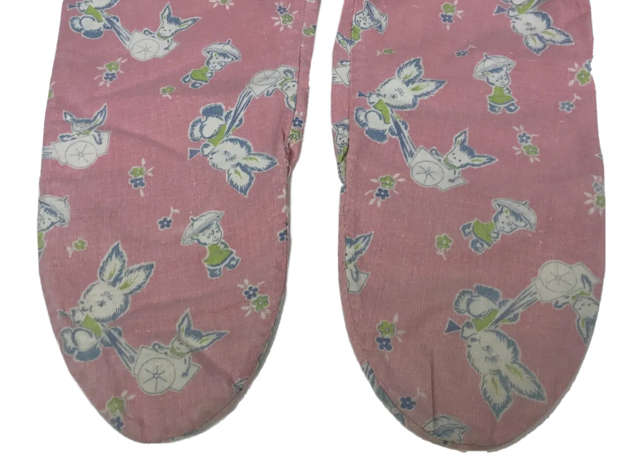Antique Vtg Boys Girls Toddler One Piece Outfit Footed PJs Pajamas Pink Bunny