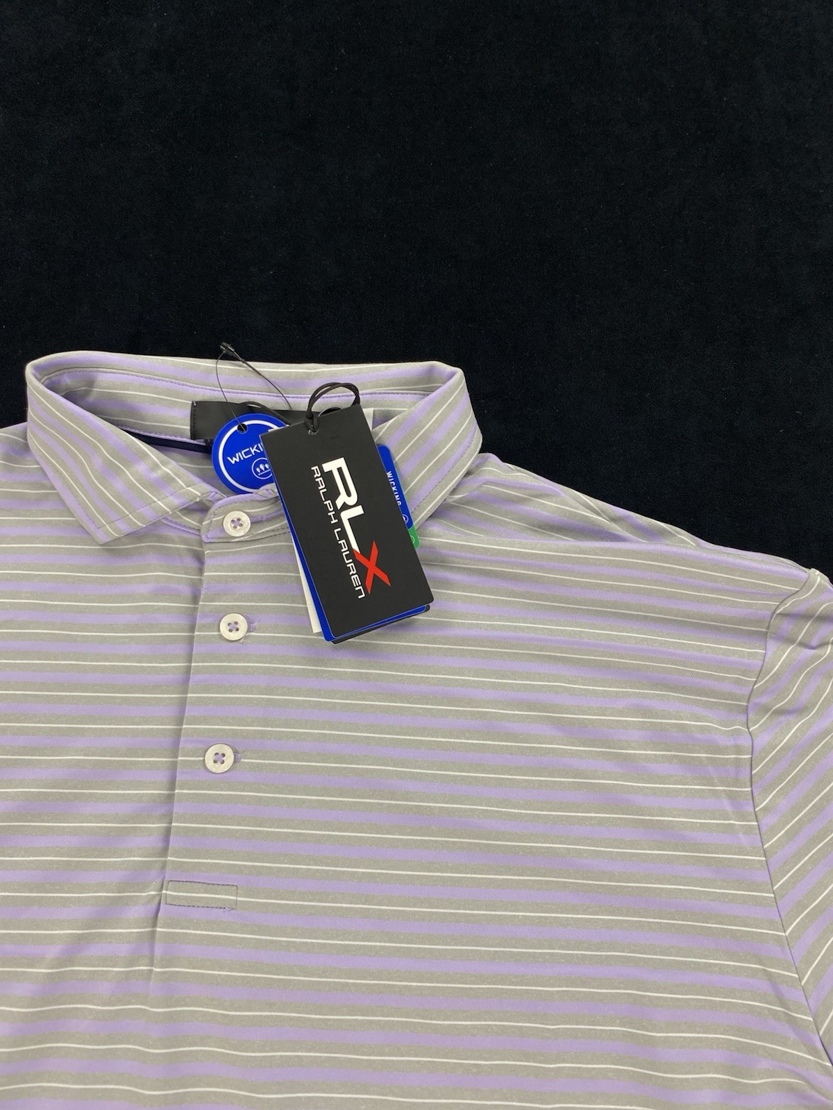 NEW RLX Ralph Lauren Short Sleeve Golf Polo Shirt Striped Purple Gray Mens