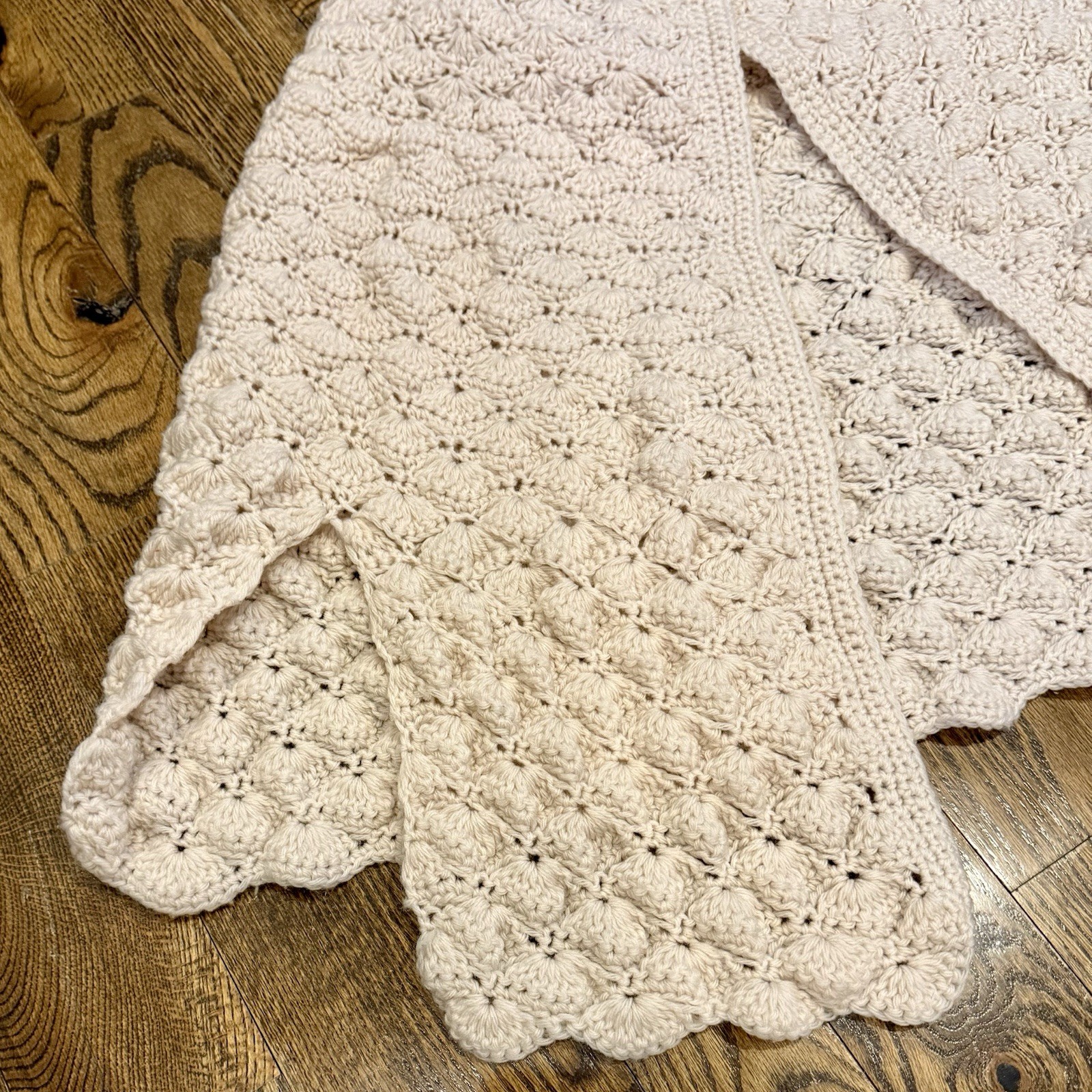 Vtg Shawl Poncho Sweater Ivory Handmade Crochet Knit Grannycore One Button