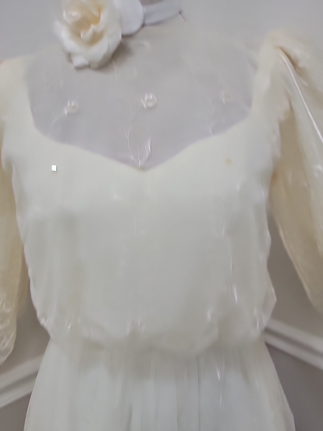 Vintage ILGWU Ivory Full Lace Wedding Dress Long Sleeve Boho Beach Bridal