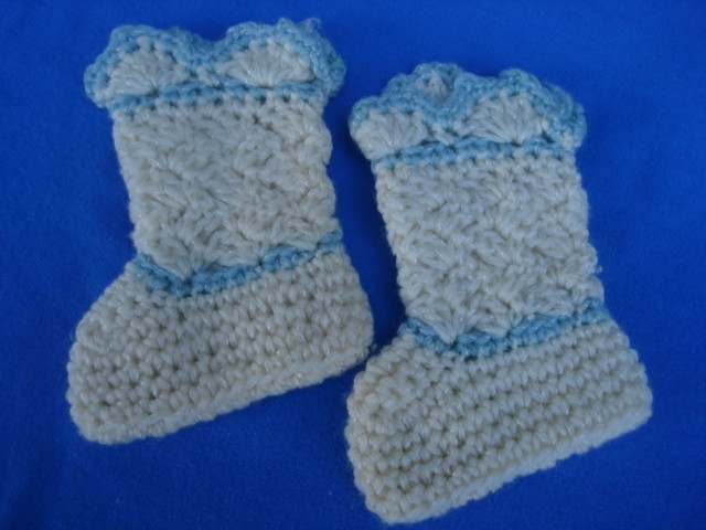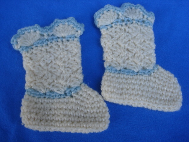 Vintage 1930's White Blue Crochet Knitted Baby Booties