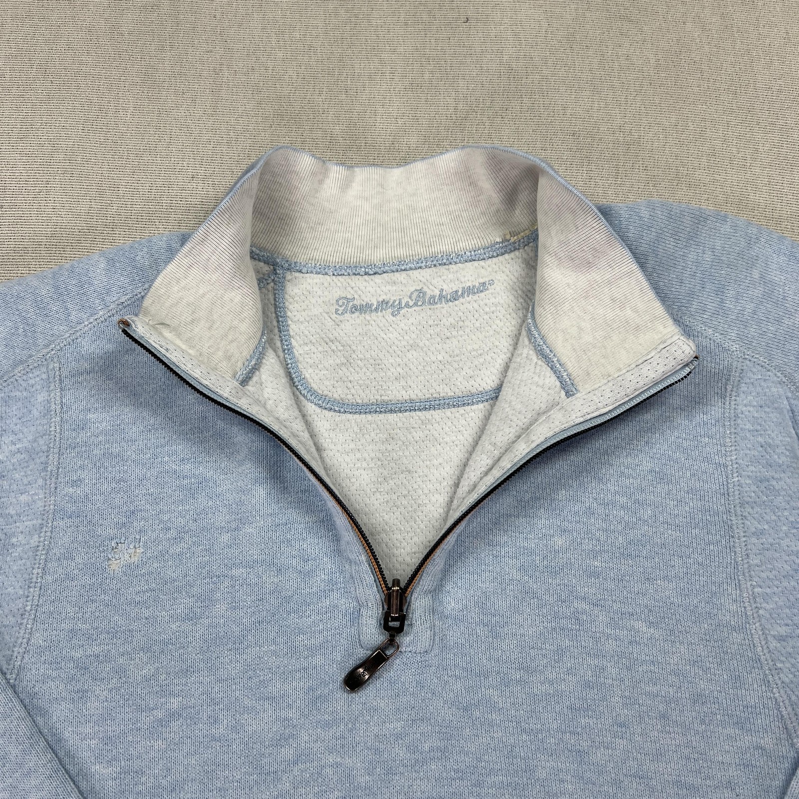 как выглядит Tommy Bahama Sweater Mens XL Blue White Reversible Quarter Zip Pullover Casual фото
