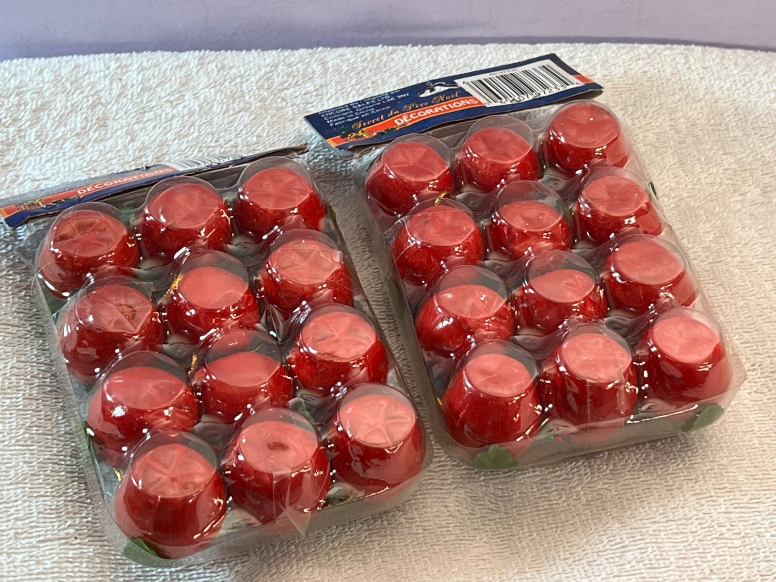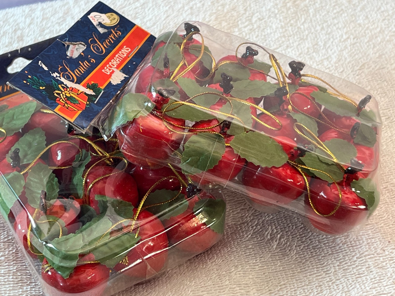 • Christmas ornaments set of 24 miniature red apples green leaves AA874