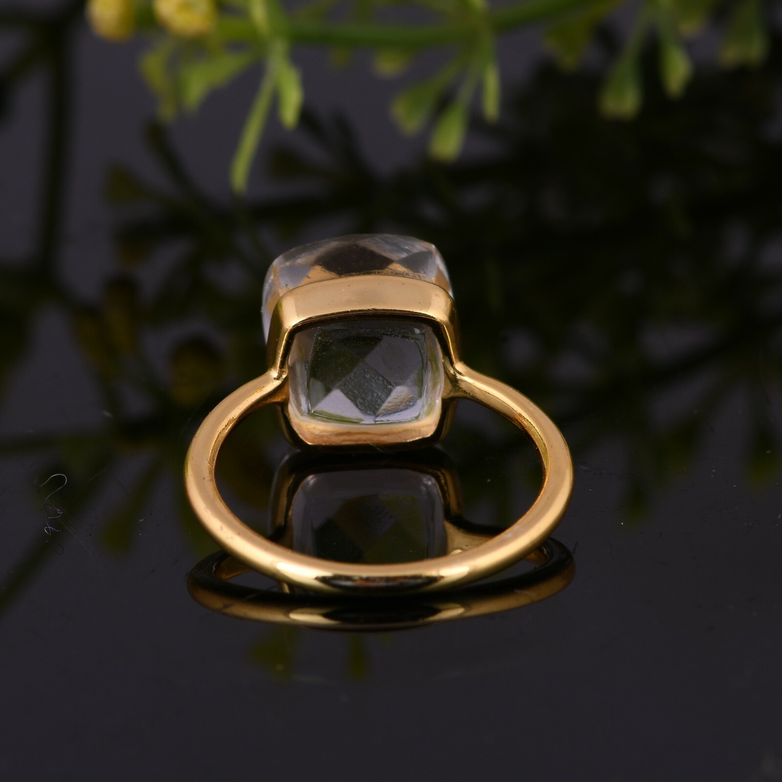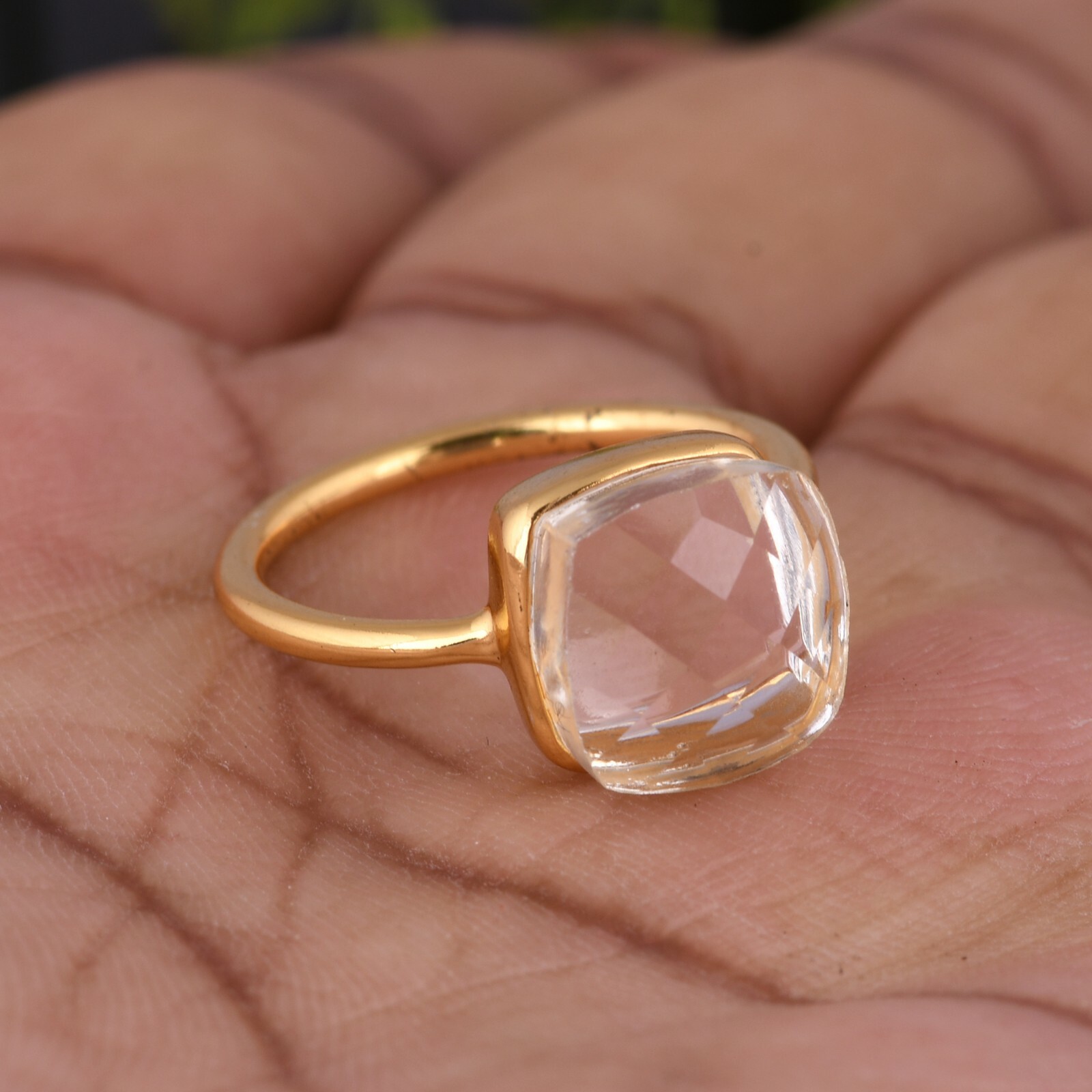 Clear Crystal Quartz Engagement Ring 18k Gold Plated 925 Silver Ring For Her