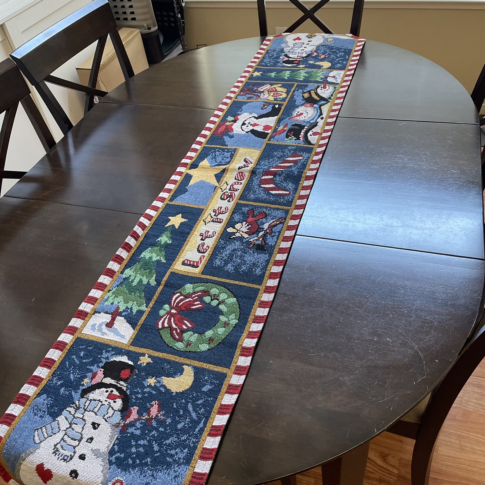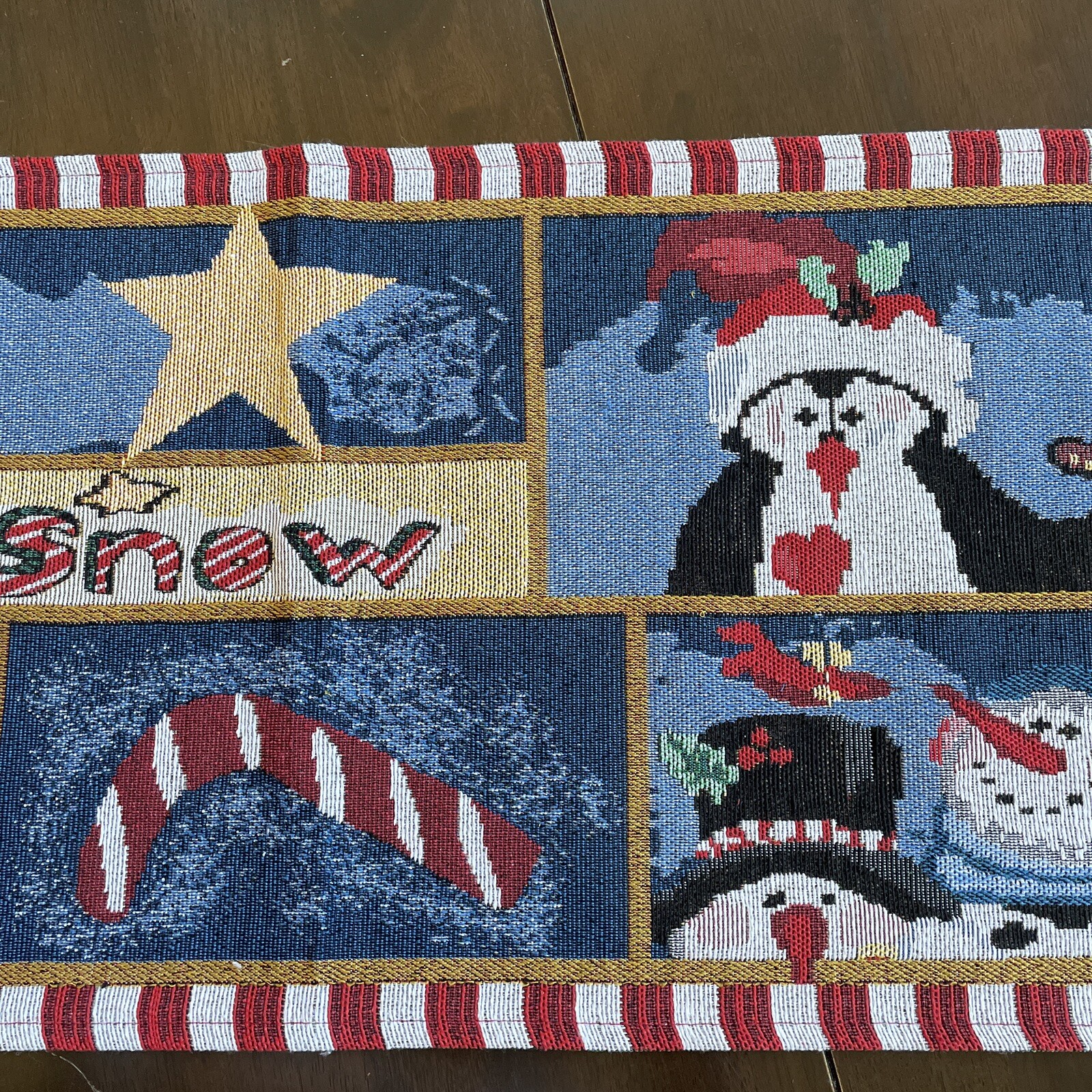 let it snow winter snowman tapestry tassel table runner