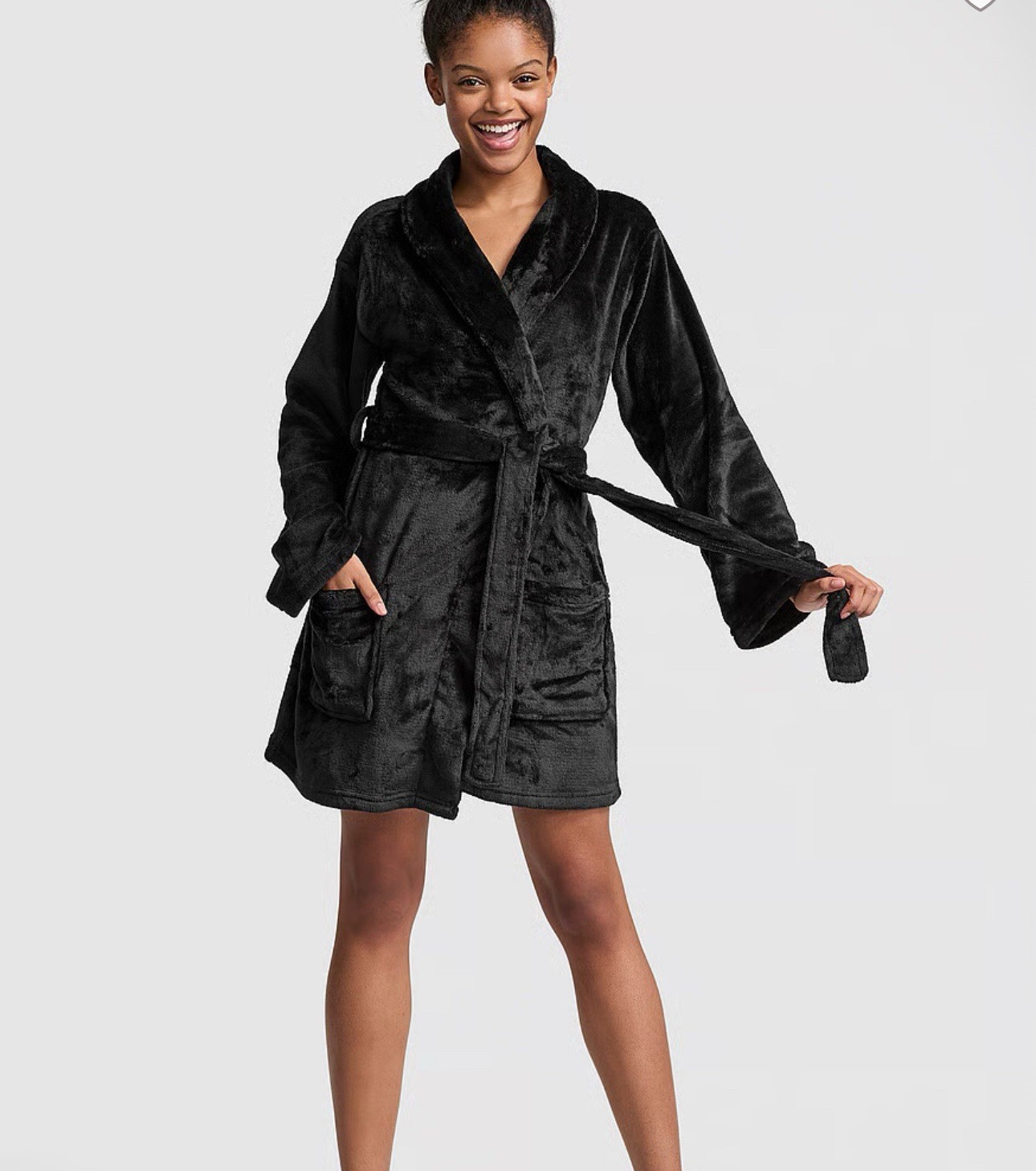 как выглядит NWT VICTORIA SECRET PINK Logo Black Plush Bath Robe M/L фото