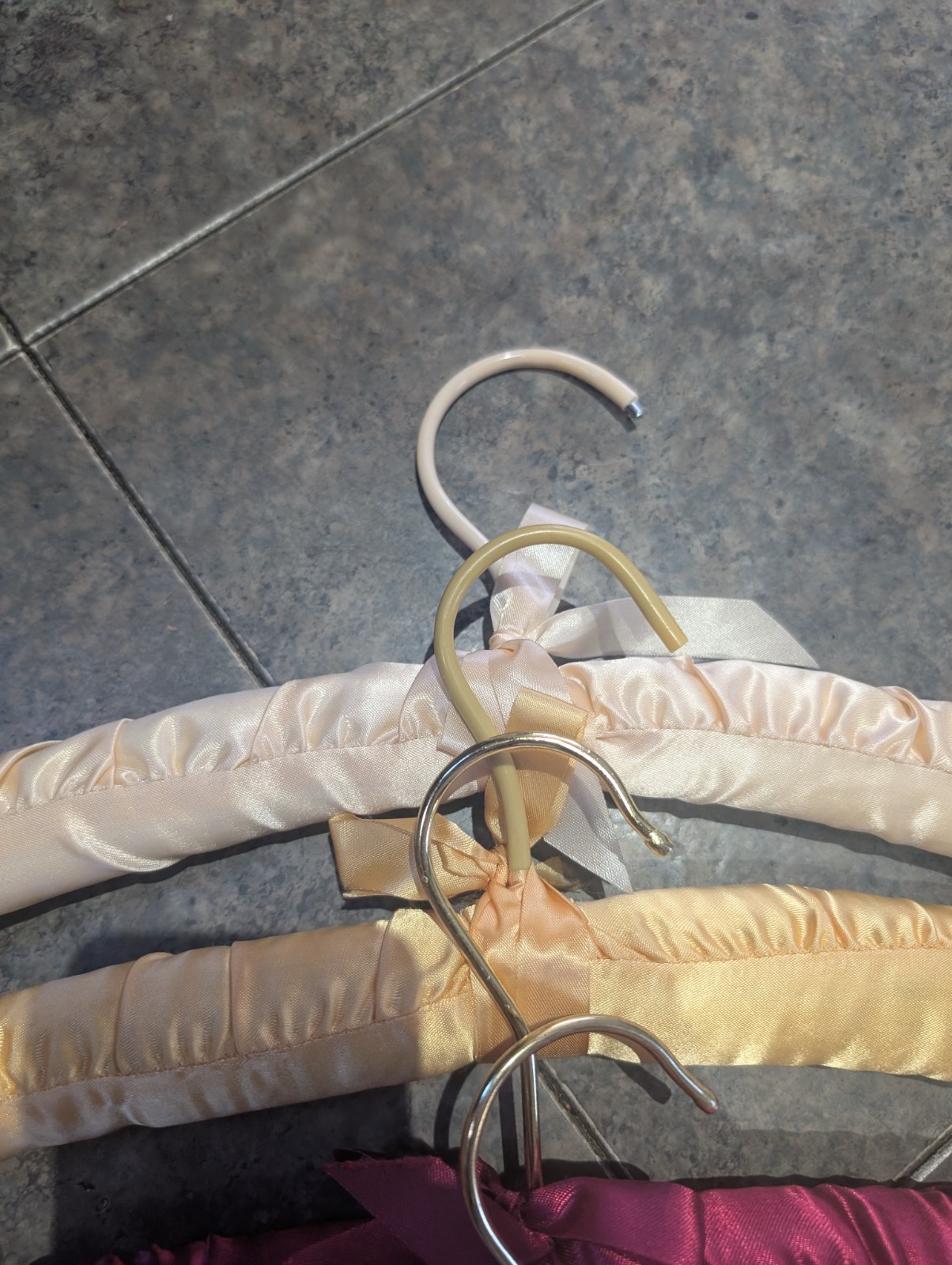 Lot of 6 Vintage Padded Hangers Satin/Silk Fabric Covered Lingerie Hangers