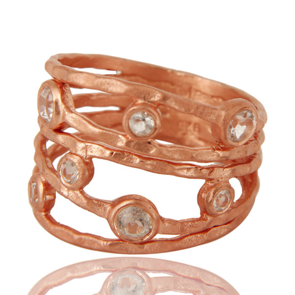 Handmade Multi Band Designer Rose Gold Plated 925 Silver Ring Jewelry