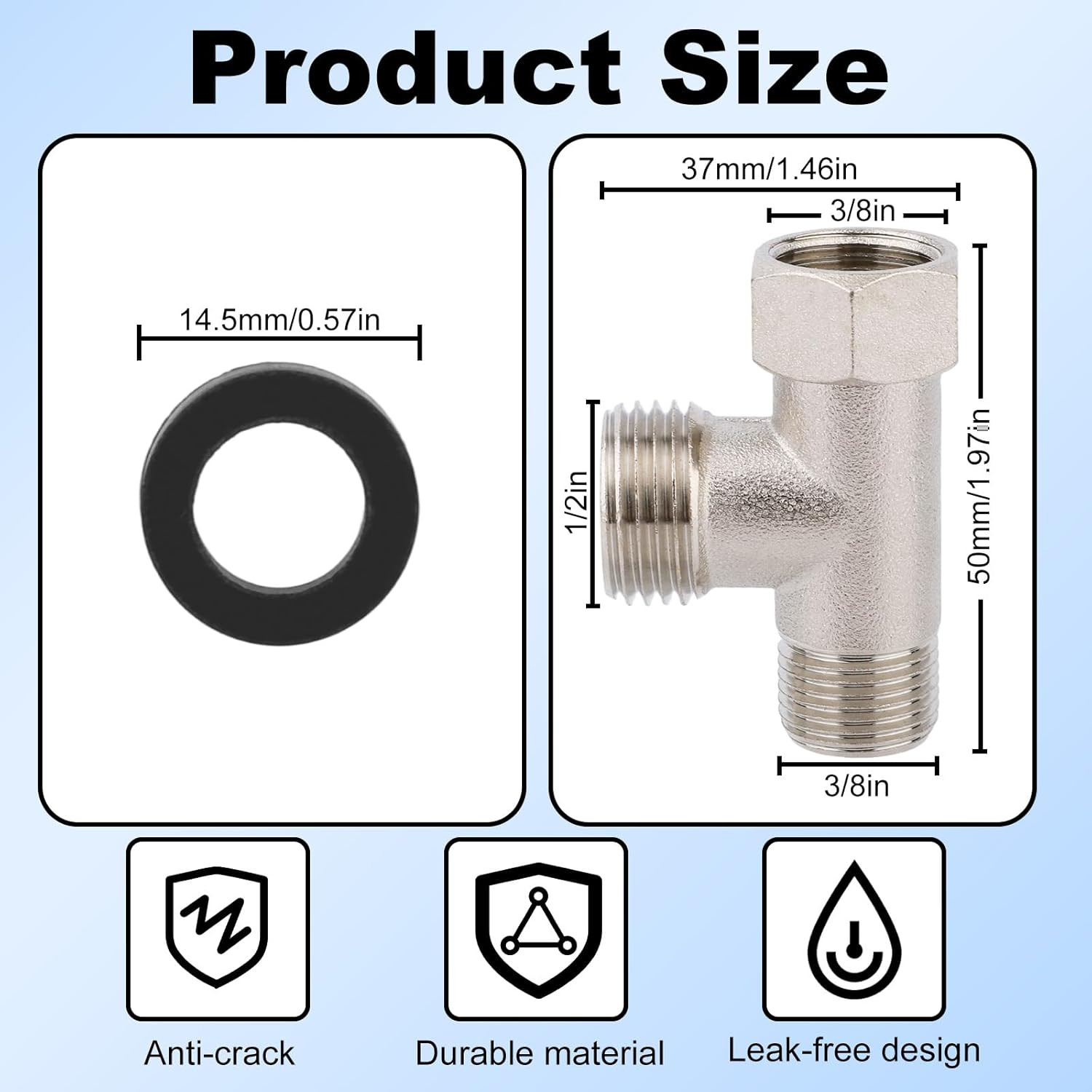 3/8 X 1/2 Bidet T Adapter for Toto Washlets 3/8X3/8X1/2 3-Way Compression Tee