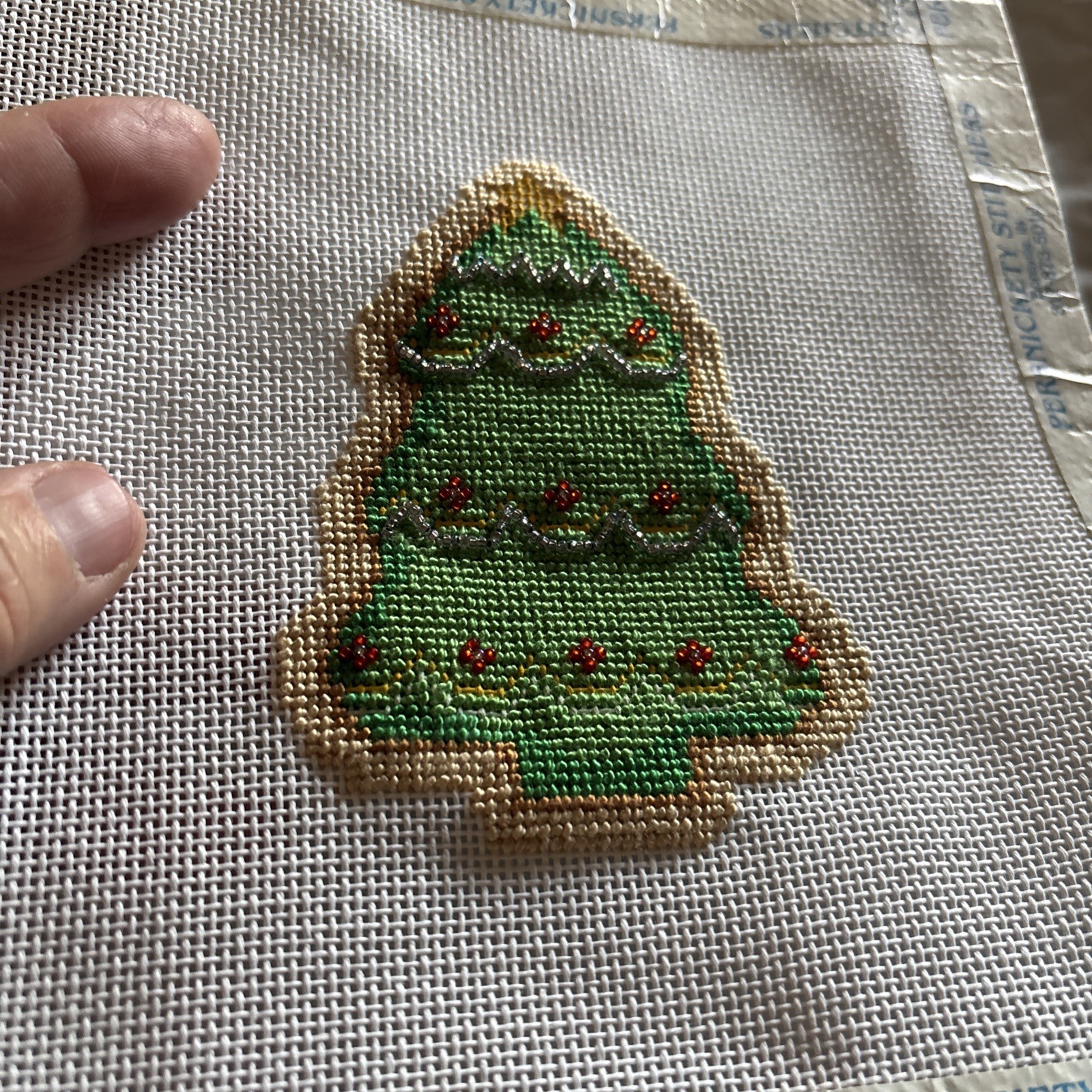 Laura Love Designs Tree Ornament Handpainted Needlepoint Canvas Almost Completed