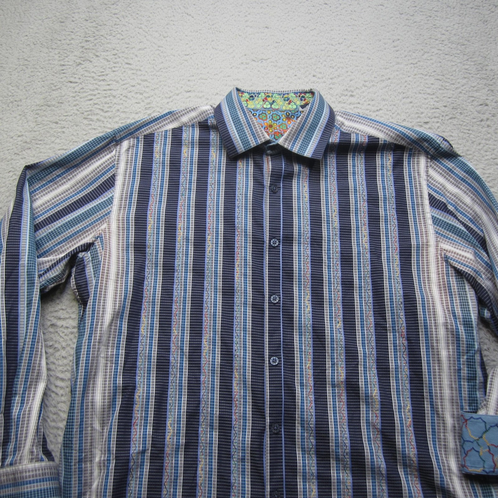 как выглядит Robert Graham Shirt Mens XL Blue Striped Button Down Long Sleeve Flip Cuff фото
