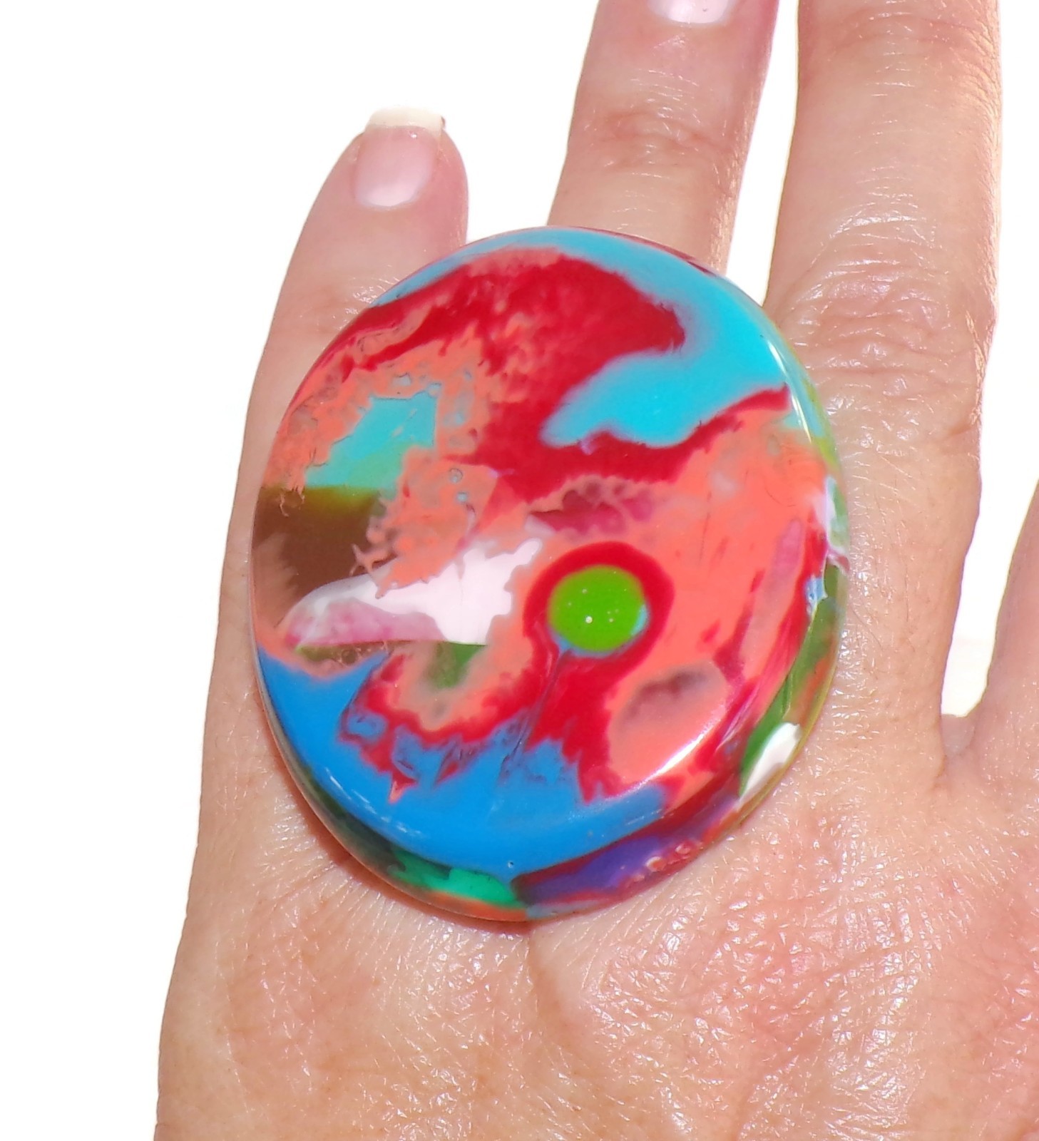 как выглядит Sobral Kandinsky Munique Multi Color Huge Runway Artist Made Ring Size 7 фото