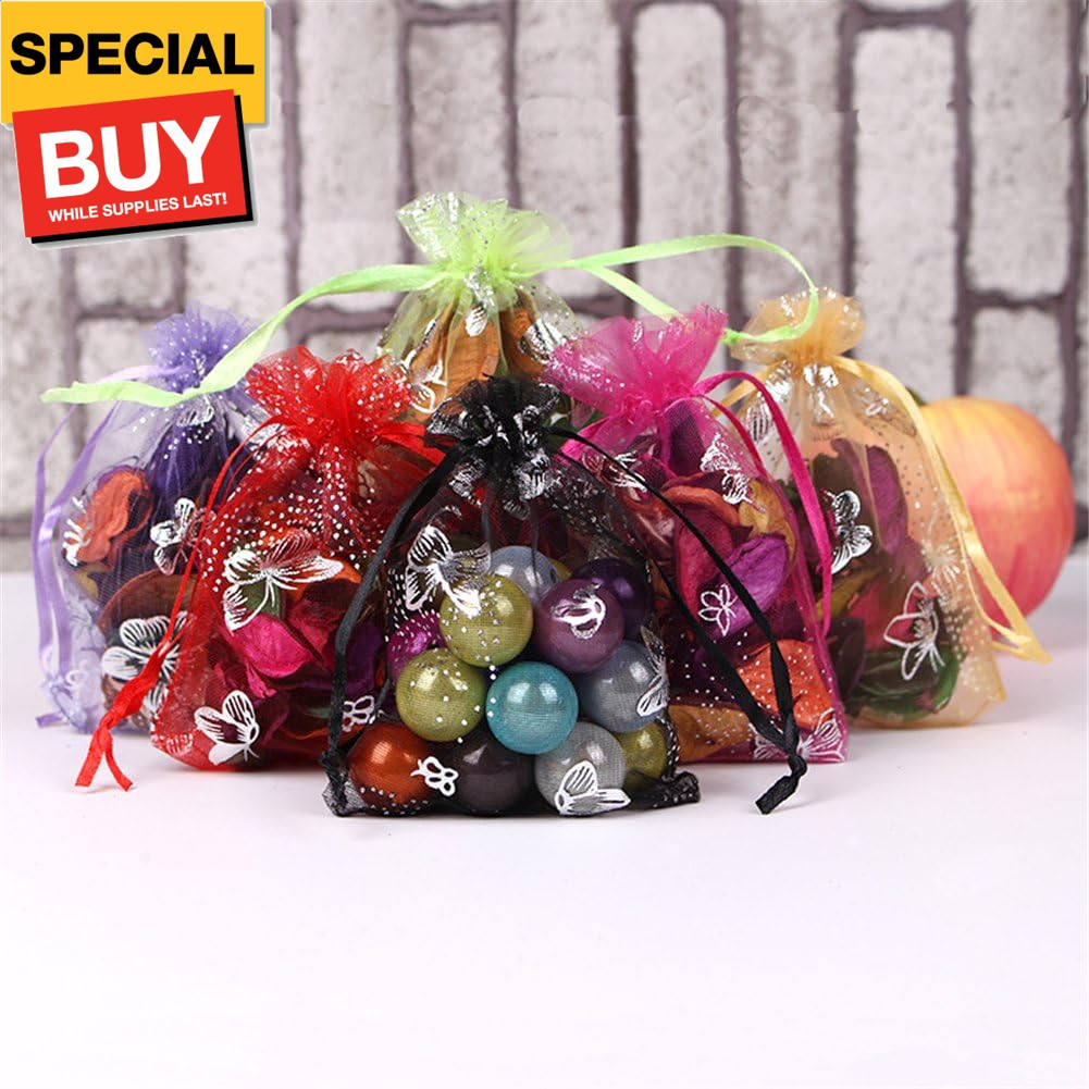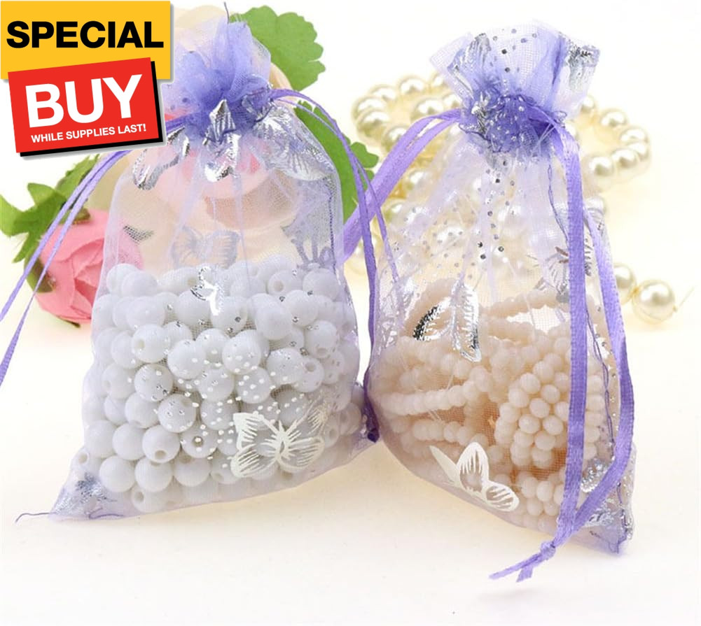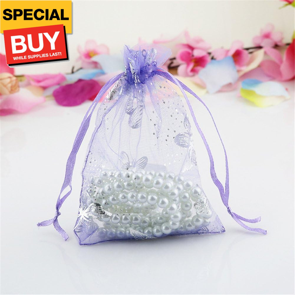 100Pcs Organza Wedding Party Gift Bags Butterfly Drawstring Pouches Jewelry Gift