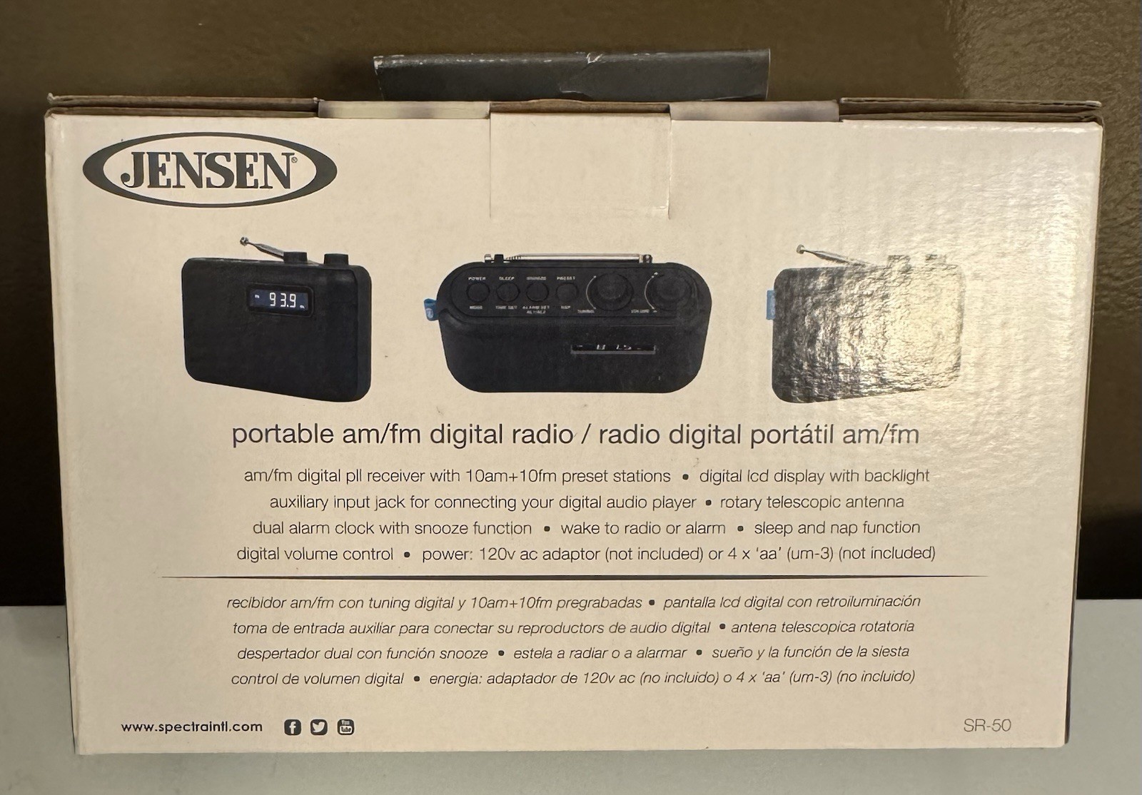 Jensen SR-50A Portable AM/FM Digital Radio Black LCD Display Auxiliary Input New