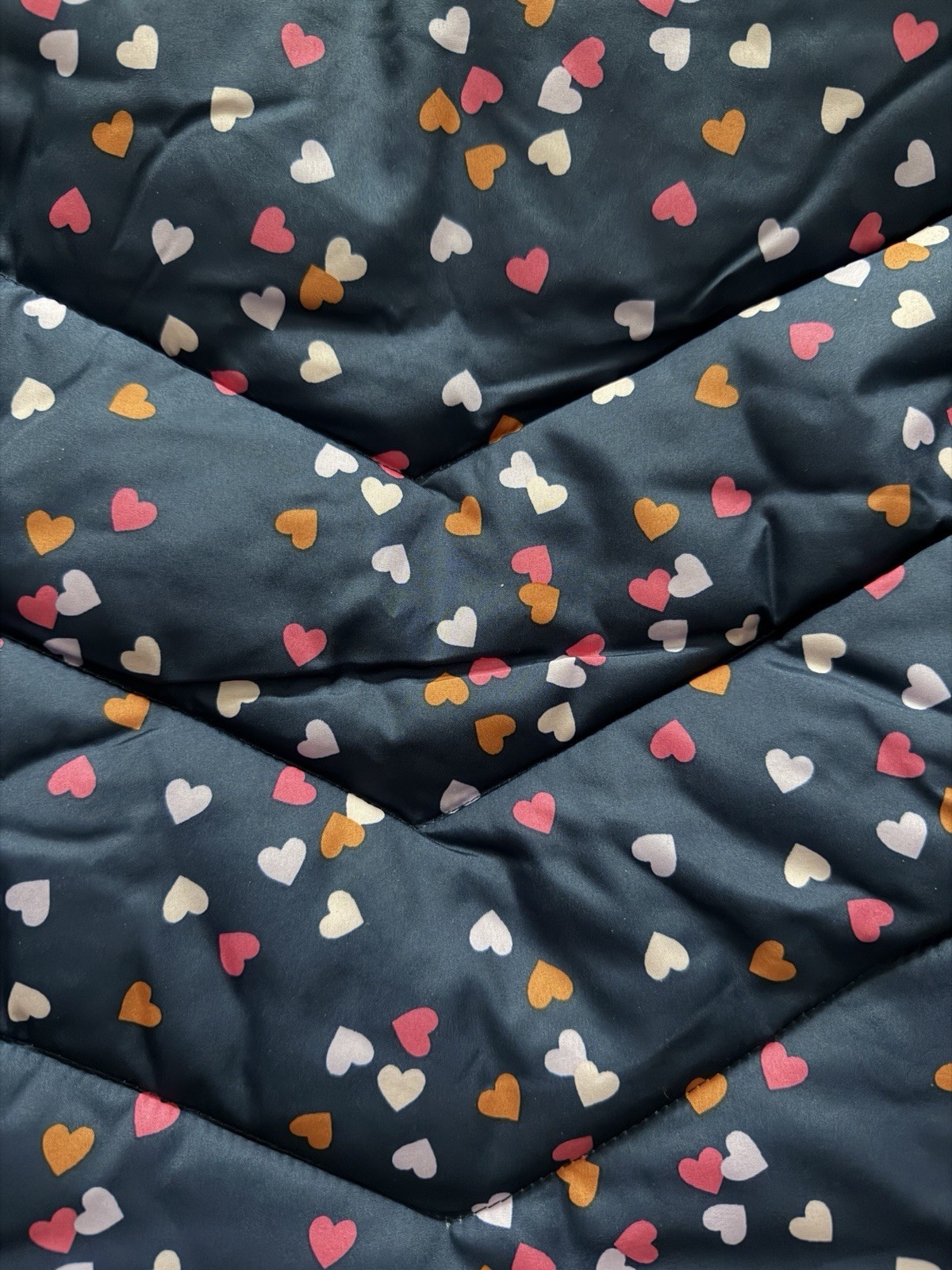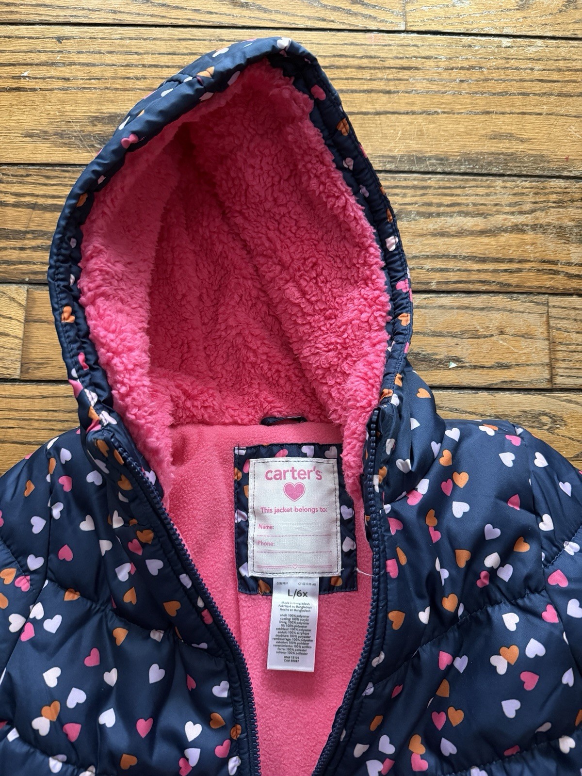 CARTERS Girls Puffer Jacket Hooded Fleece Lined Navy Blue Hearts Warm New Size 6