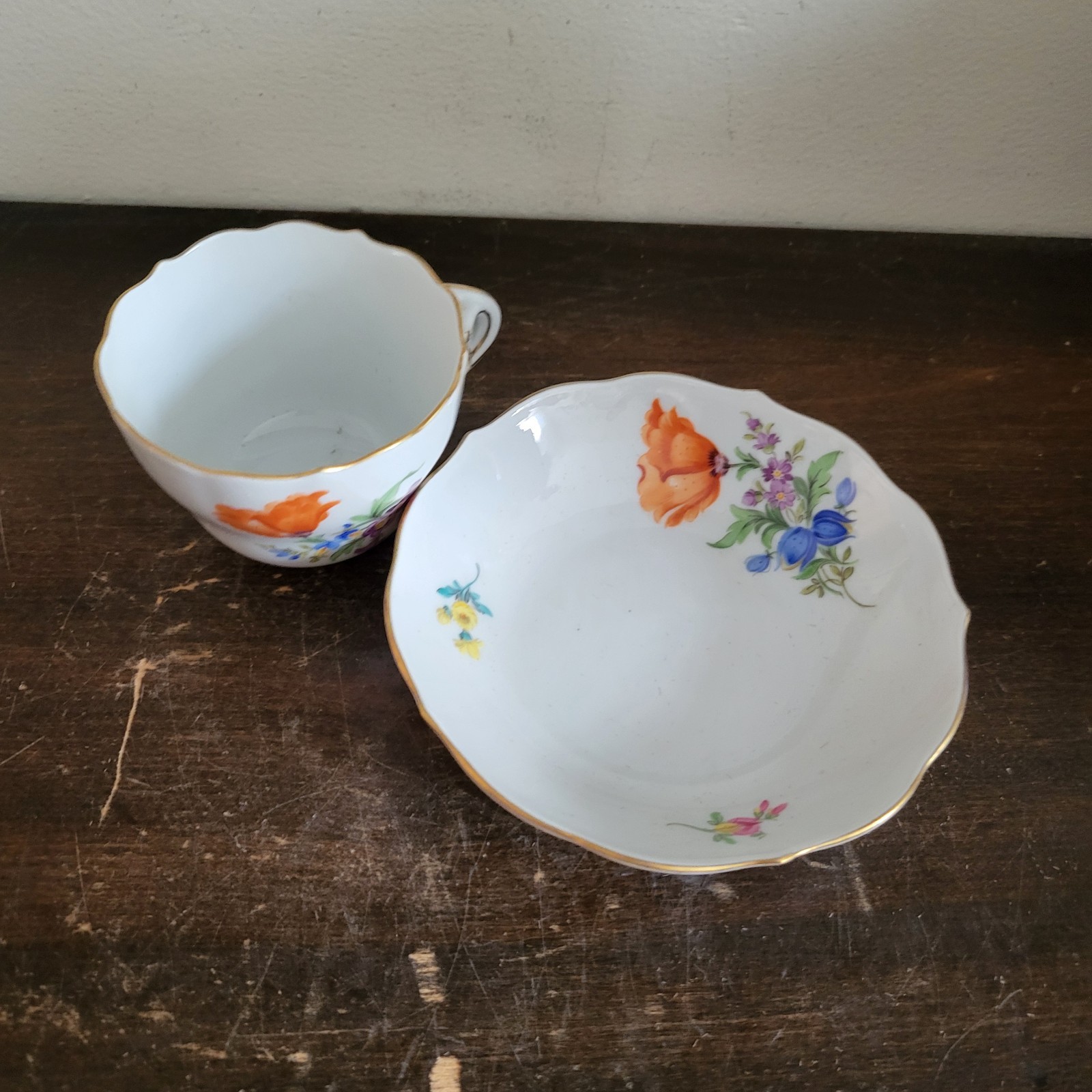 как выглядит Antique Meissen Germany Demitasse Cup And Saucer Floral Gold фото