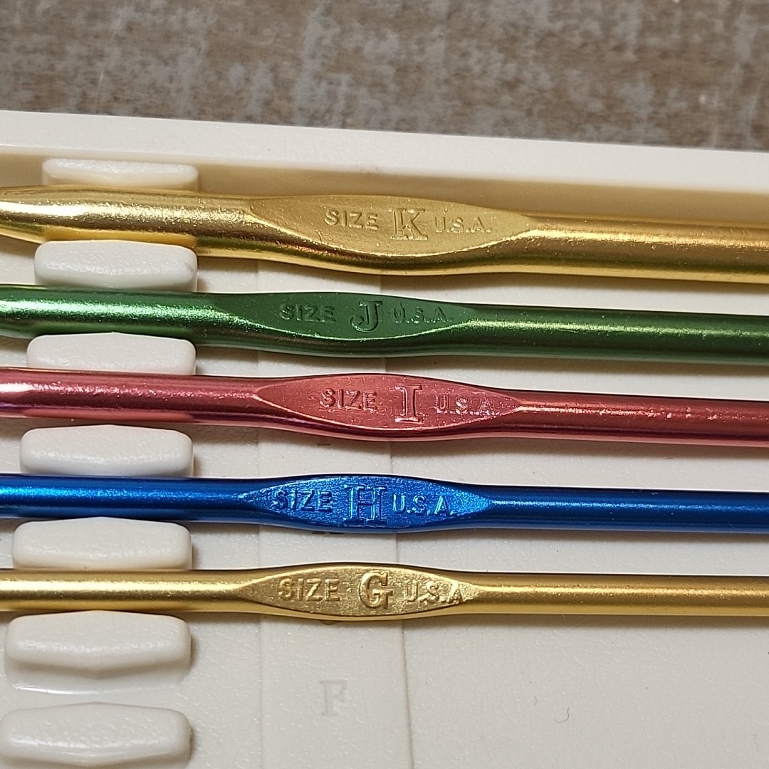 6 Pc Boye Crochet Hook Set D G-K in Lidded Case Missing E-F Aluminum