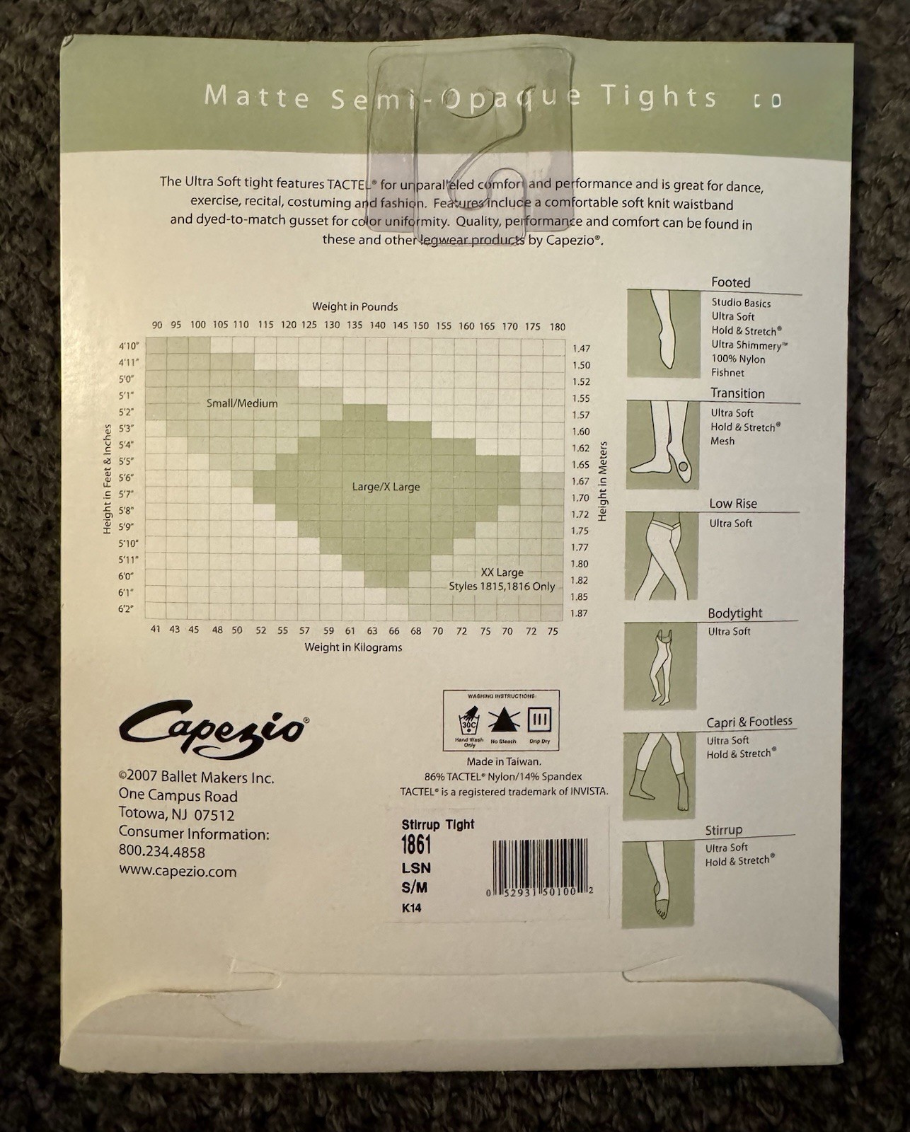 как выглядит CAPEZIO Ultra Soft STIRRUP Tights 1861 Adult S/M light suntan NEW in PKG фото