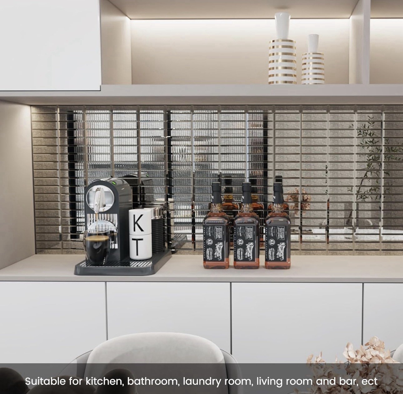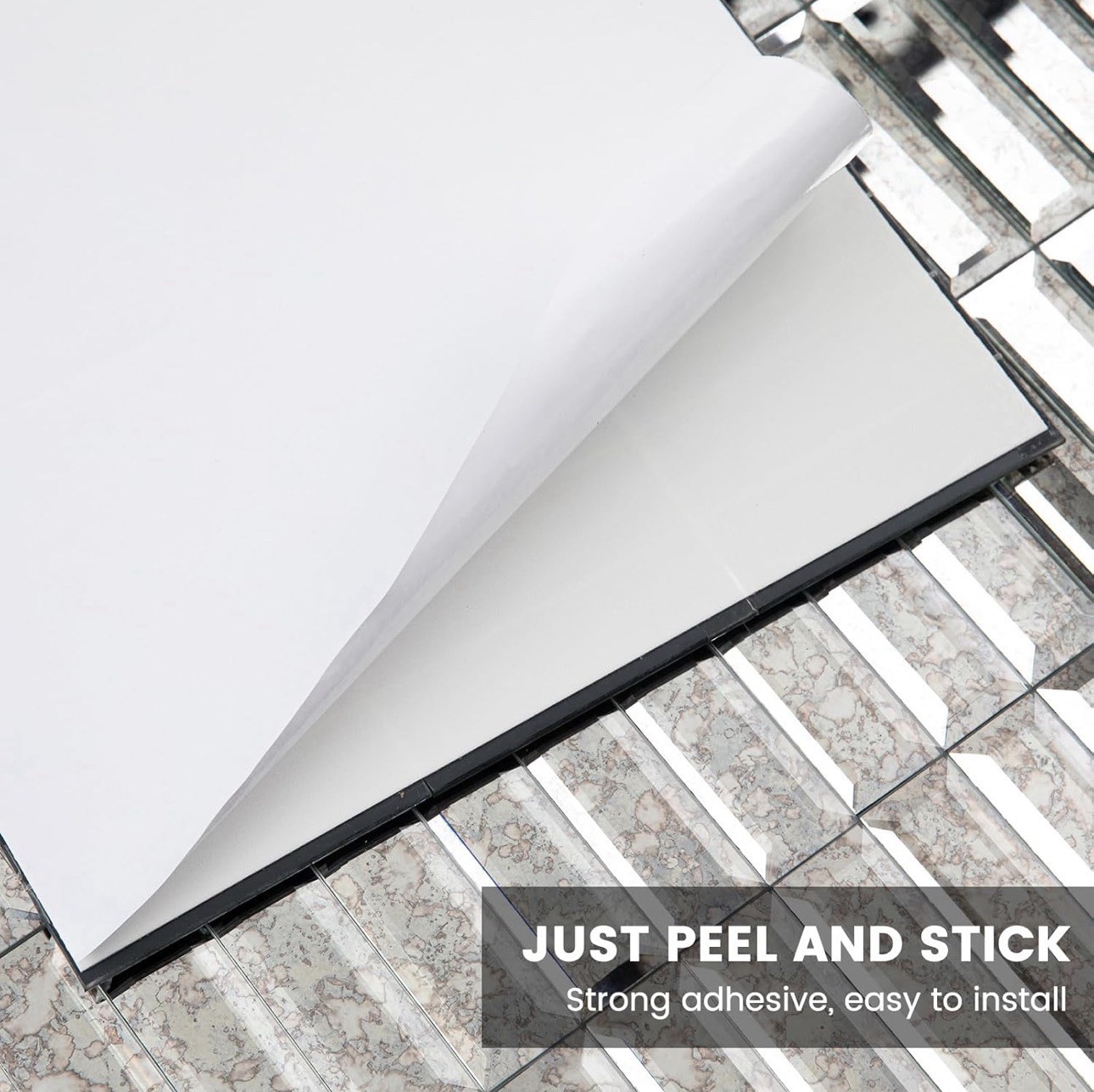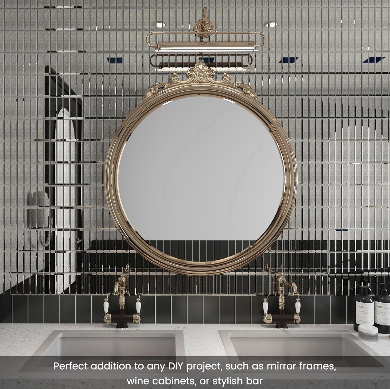 Peel and Stick Mirror Glass Mosaic Tile Self Adhesive 1.2 x 12 Inch Strip Mir...