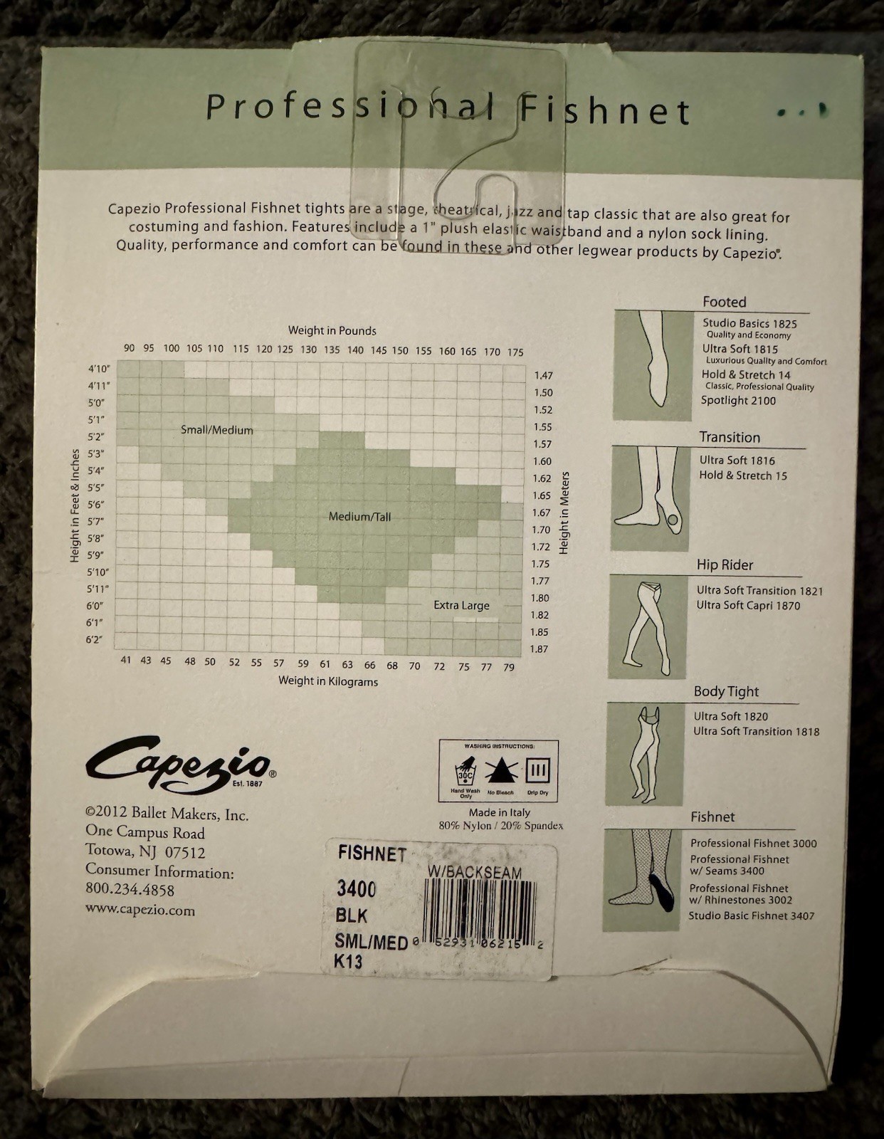 как выглядит CAPEZIO Professional Fishnet, Fishnet w/BACKSEAM 3400 Black Adult S/M NIP фото