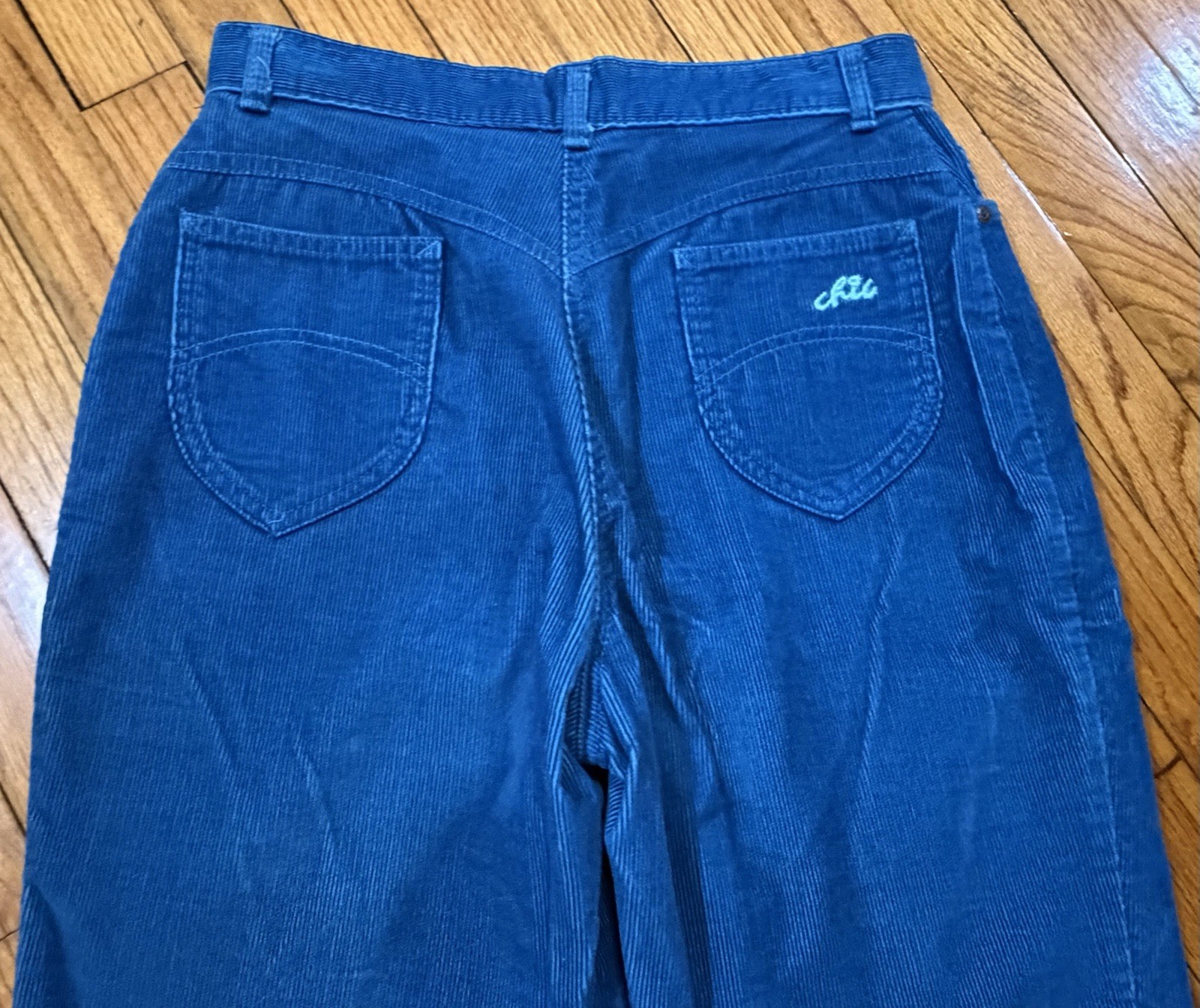 как выглядит Vtg 1980s Chic by H.I.S. Teal Blue Corduroy Pants Women