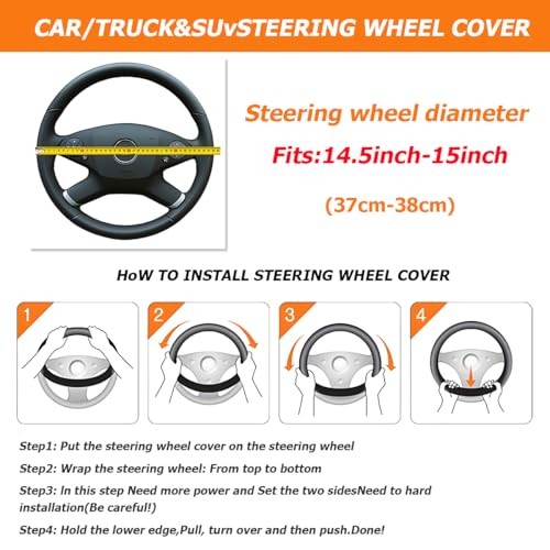 • Car Steering Wheel Cover, PU Leather Non-Slip Lantern Pattern Vehicle Black/Red