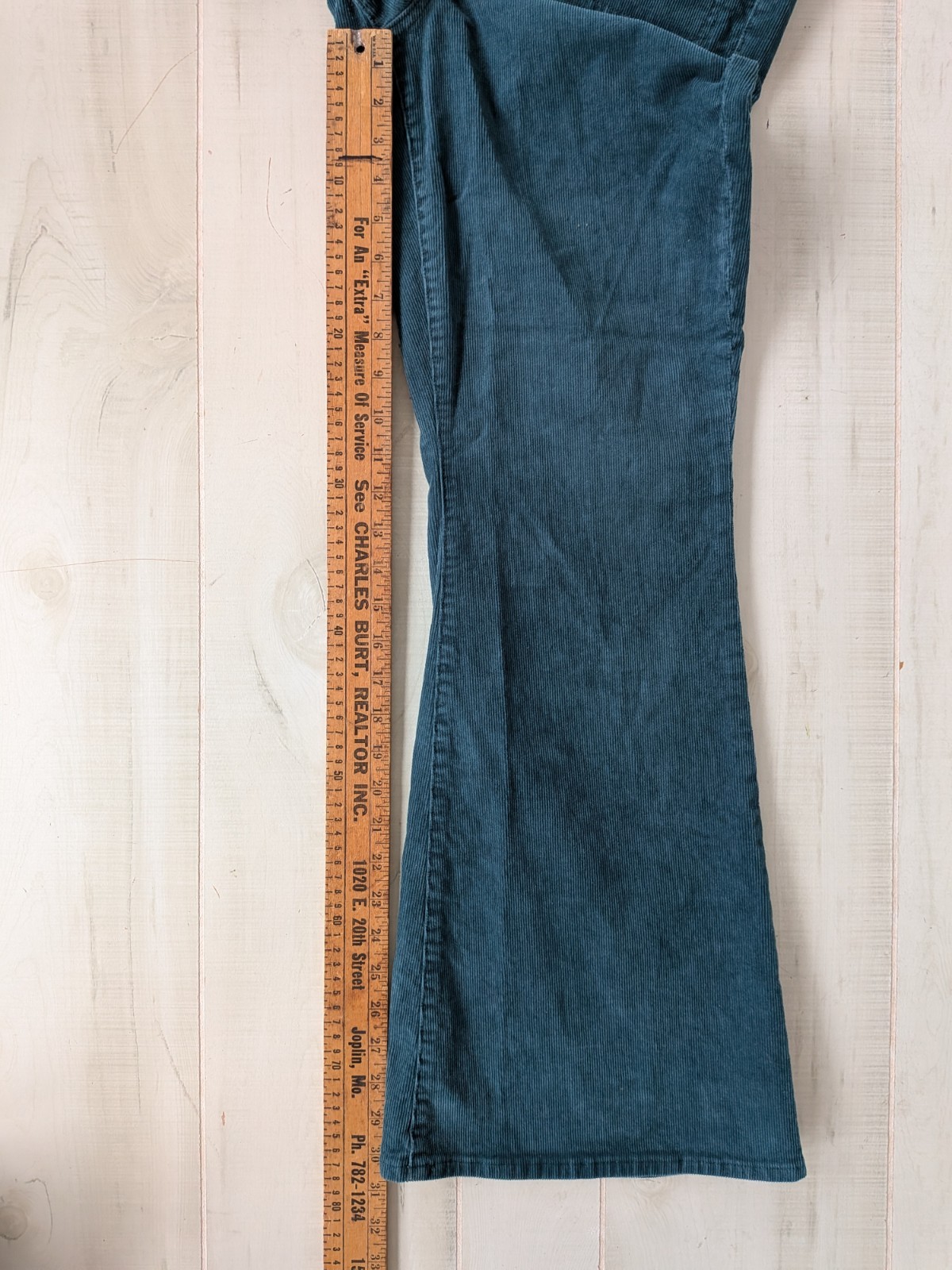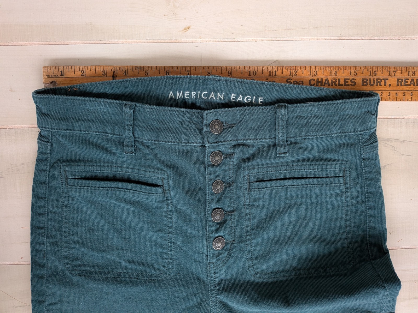 как выглядит American Eagle Super Hi Rise Flare Corduroy Pants Women Sz 12 Green Button Fly фото