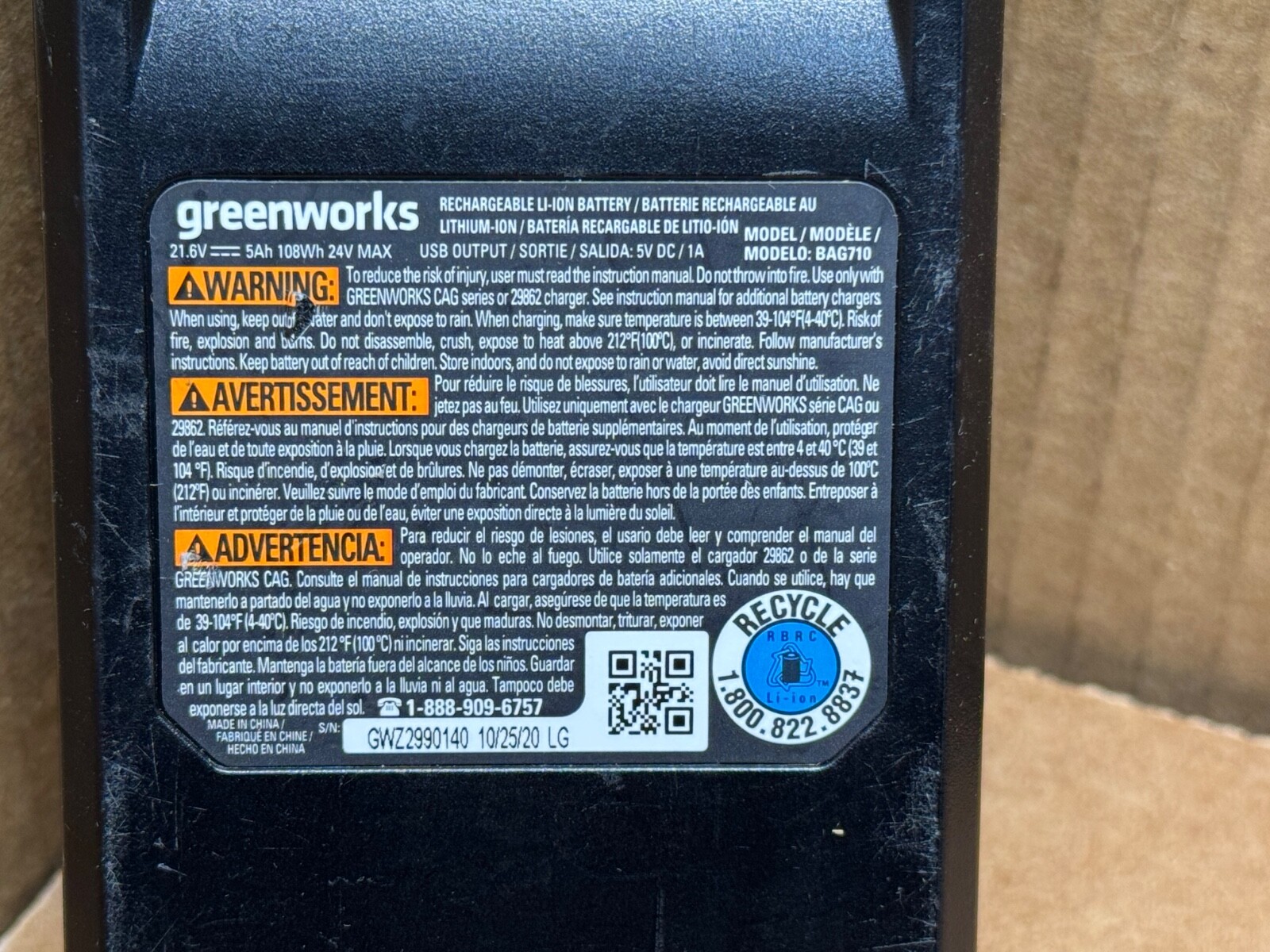 GENUINE GREENWORKS 24V MAX 5.0AH USB RECHARGEABLE BATTERY - BAG710