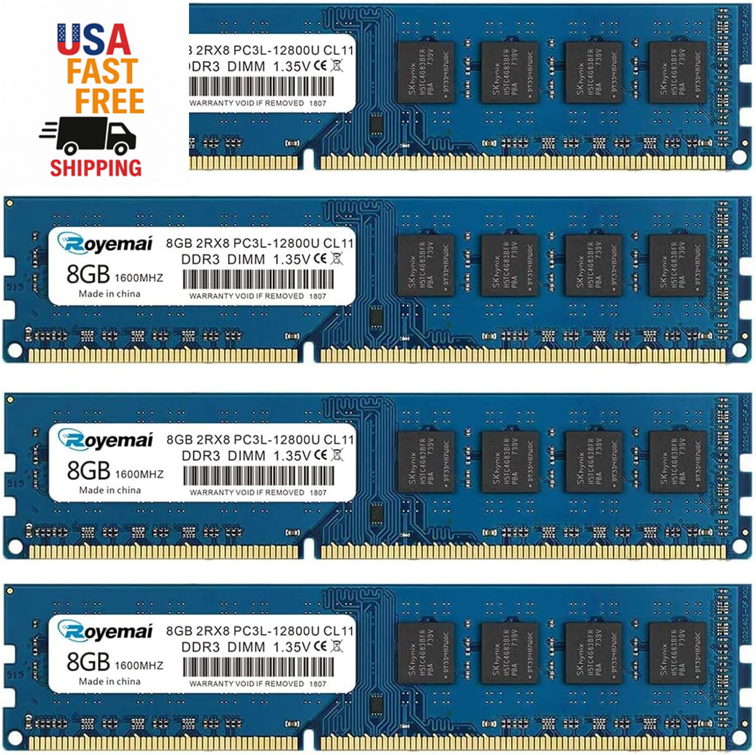 32GB Kit 4X8GB DDR3 RAM, DDR3 1600 8GB PC3L-12800U 32G DDR3L Dimm 2Rx8 1.35V/1