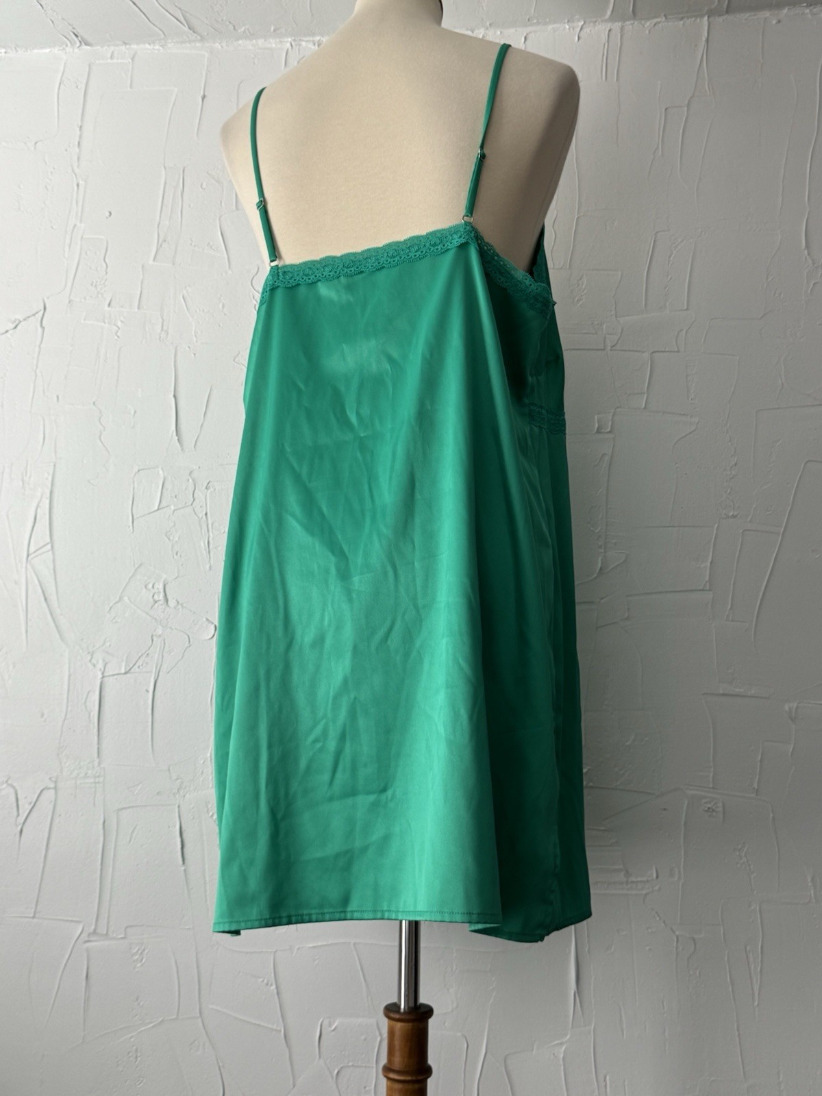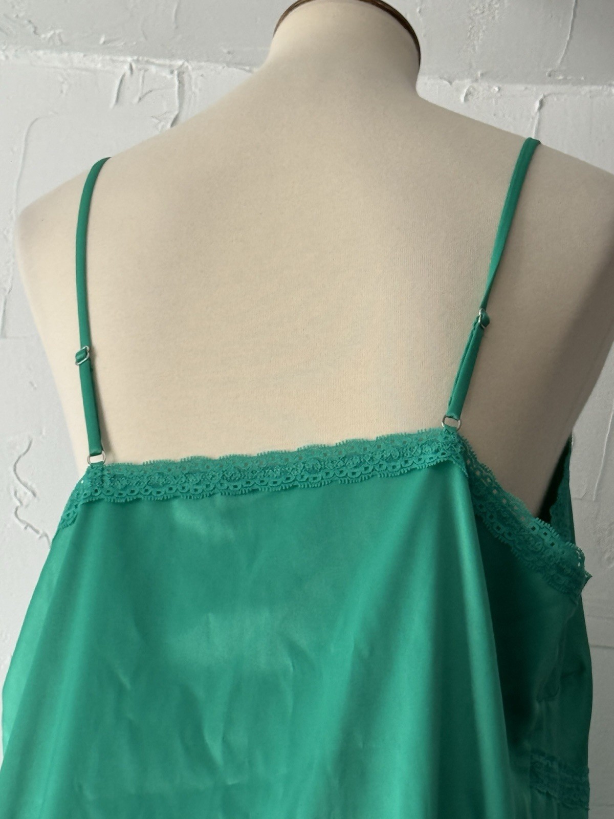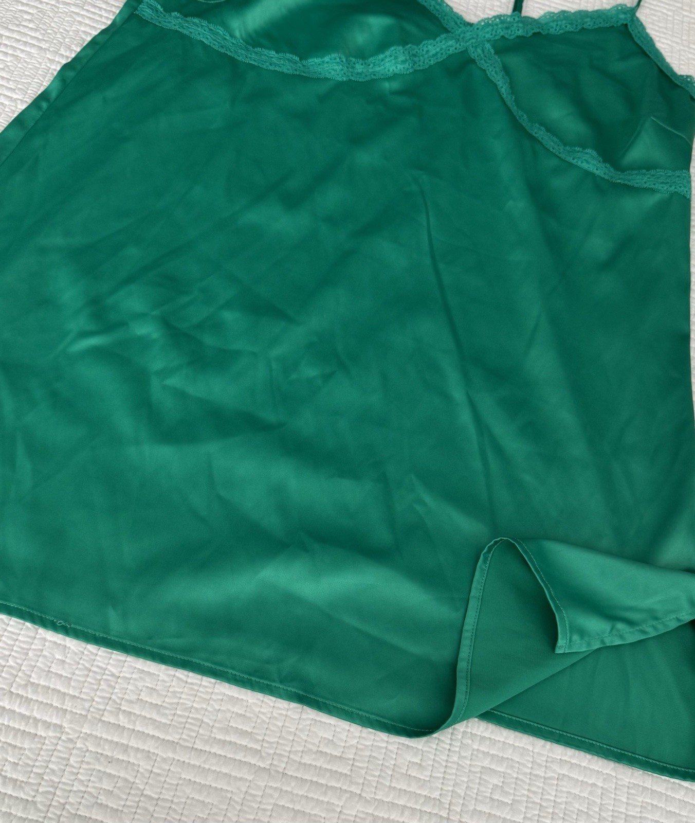 как выглядит Colsie Sleepwear/Slip Green Satin XL Lace Trim Adjustable Straps Slits EUC фото