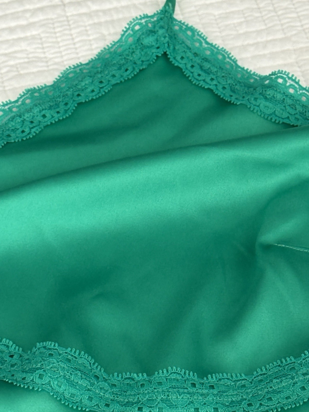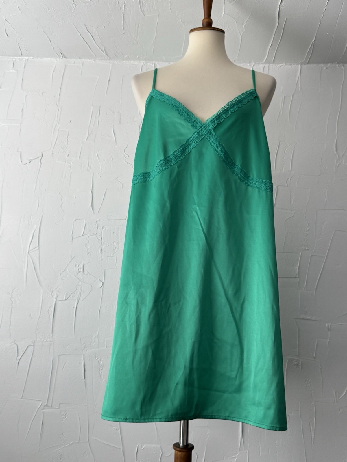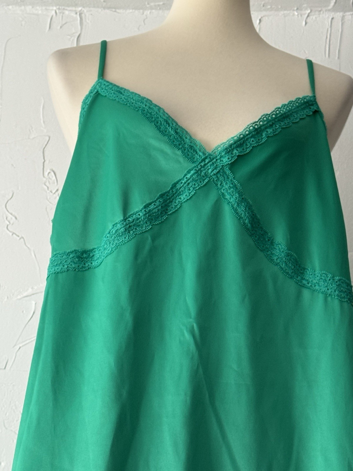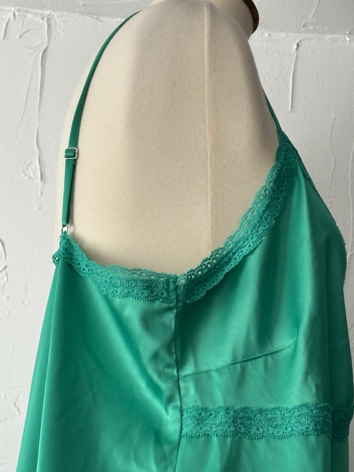 как выглядит Colsie Sleepwear/Slip Green Satin XL Lace Trim Adjustable Straps Slits EUC фото