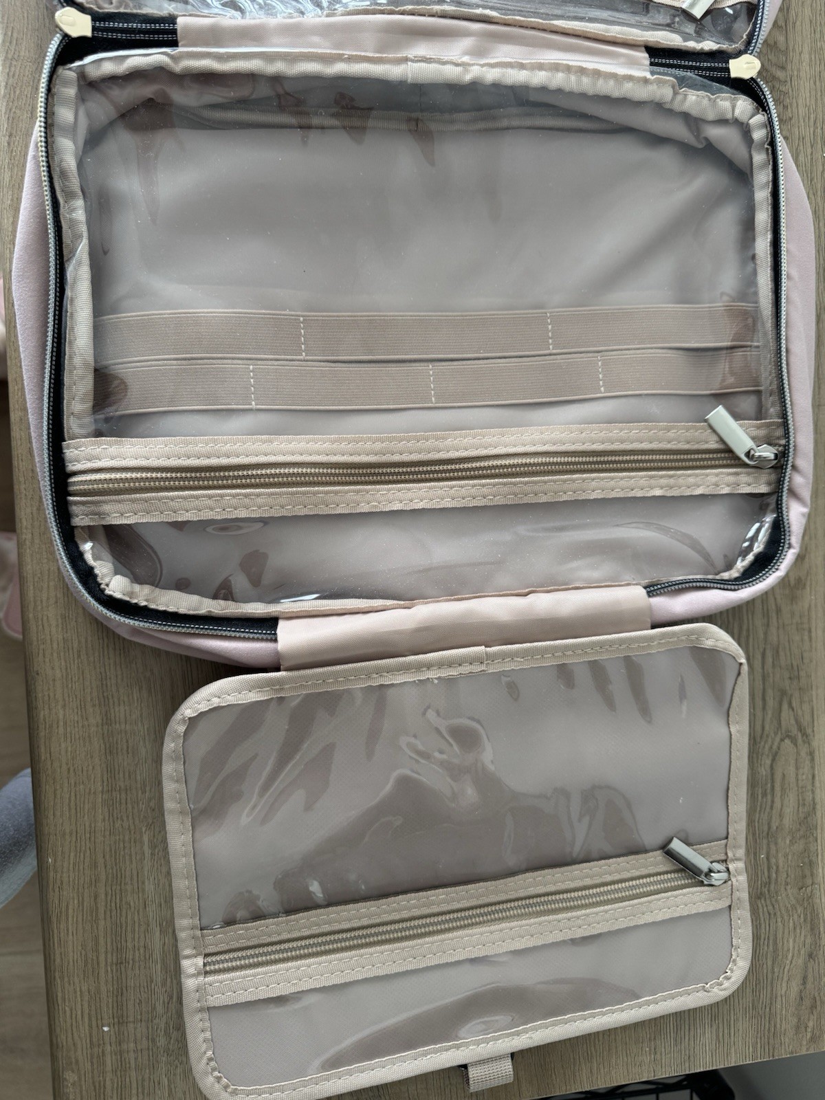 как выглядит Bagsmart jewelry travel bag, suede-like material, tan/salmon, zip around фото