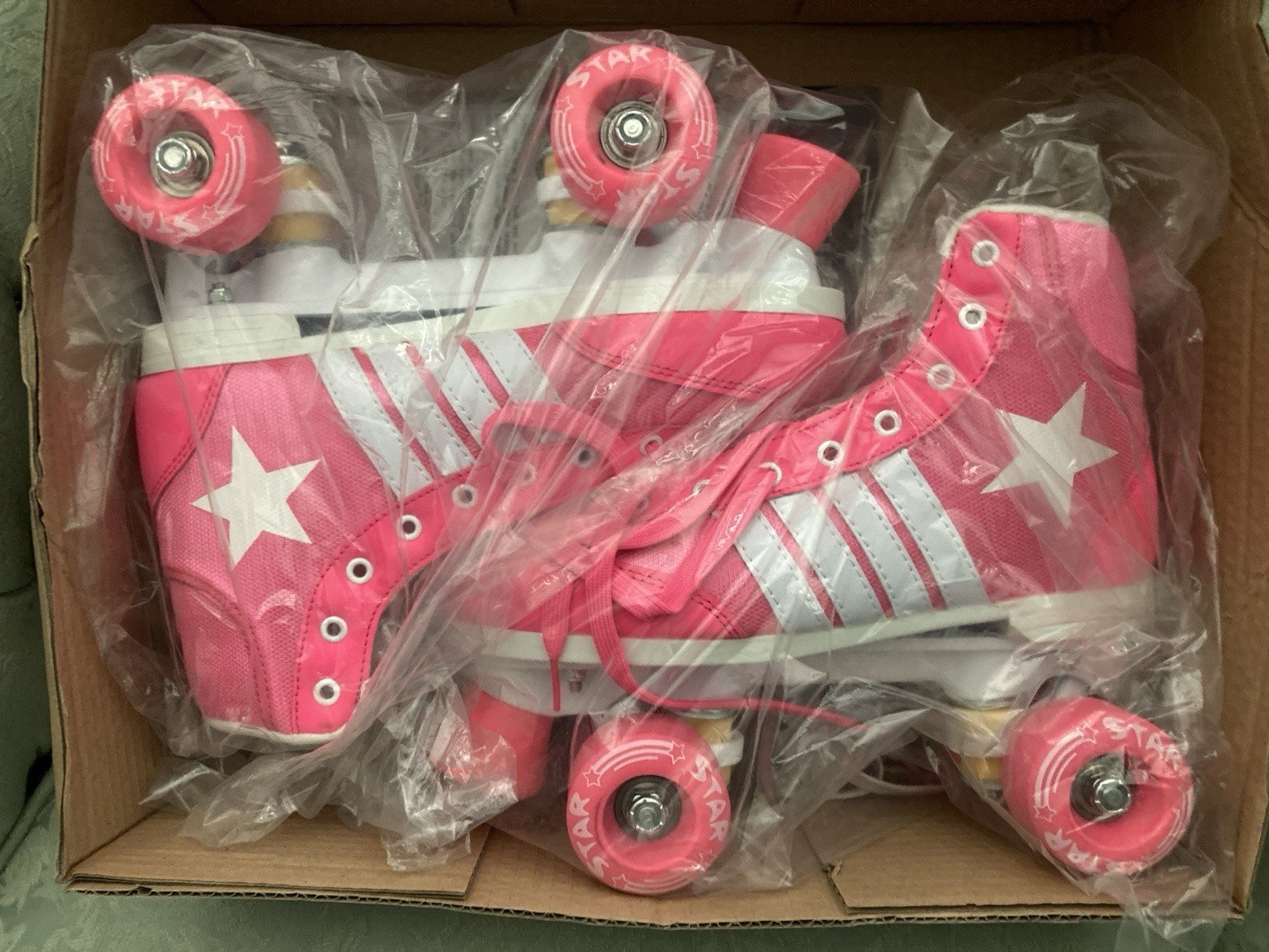 как выглядит EPIC ROLLER SKATES INDOOR OUTDOOR STAR CARINA STRIPES PINK QUAD HIGH TOP SIZE 6 фото
