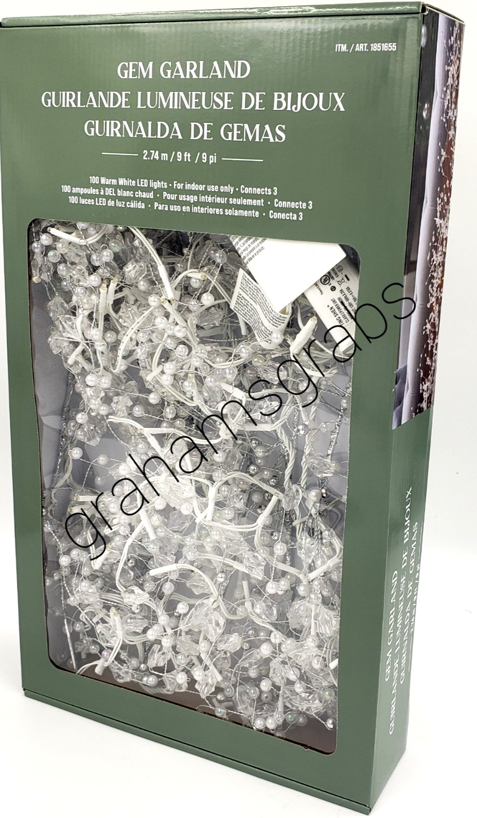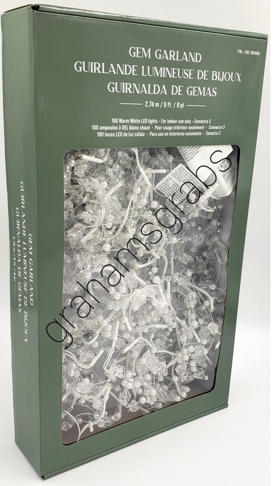 GEM GARLAND CHRISTMAS LIGHTS WEDDING DECOR ELEGANT INDOOR 9' CONNECTABLE 100 LED