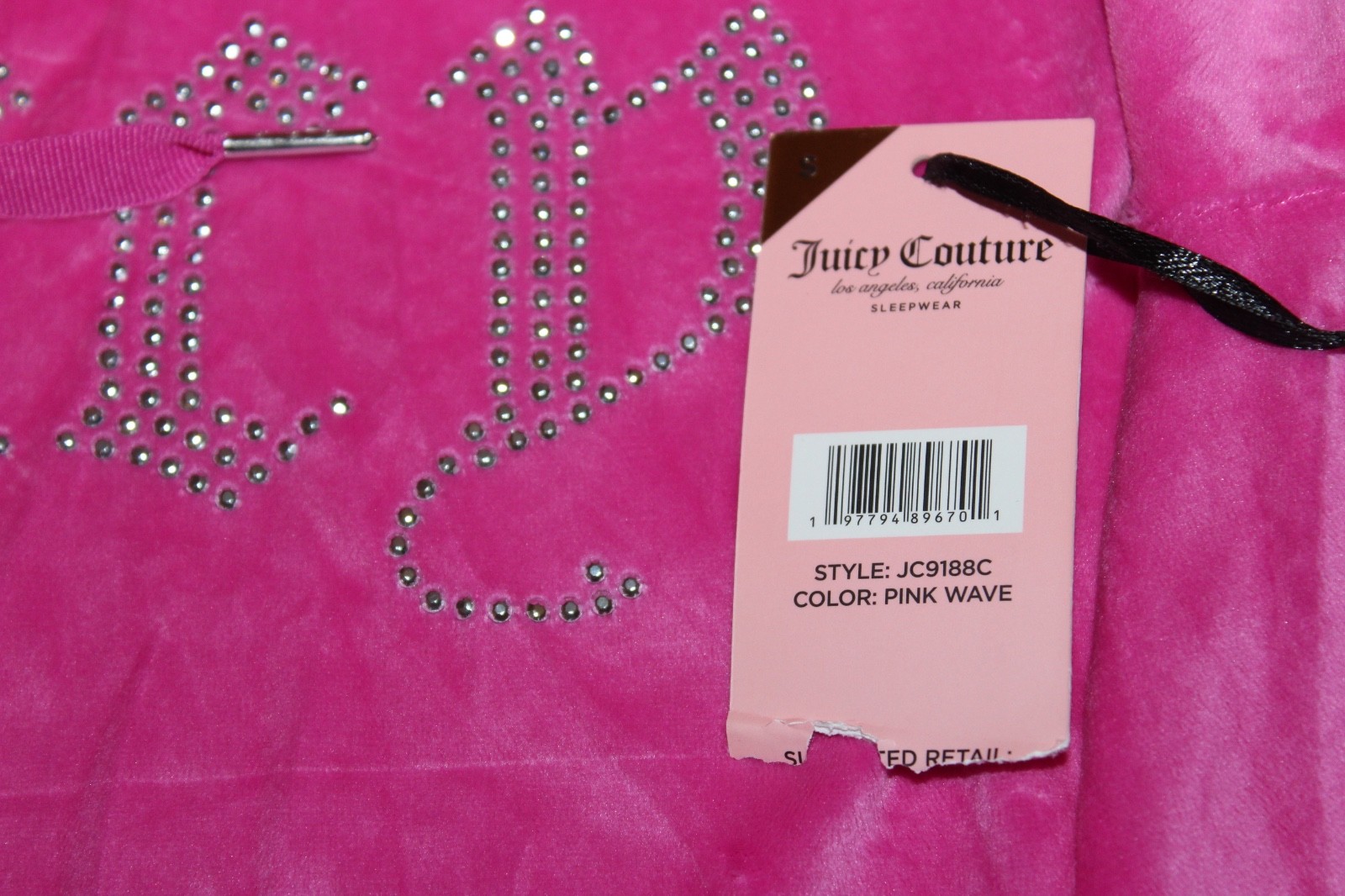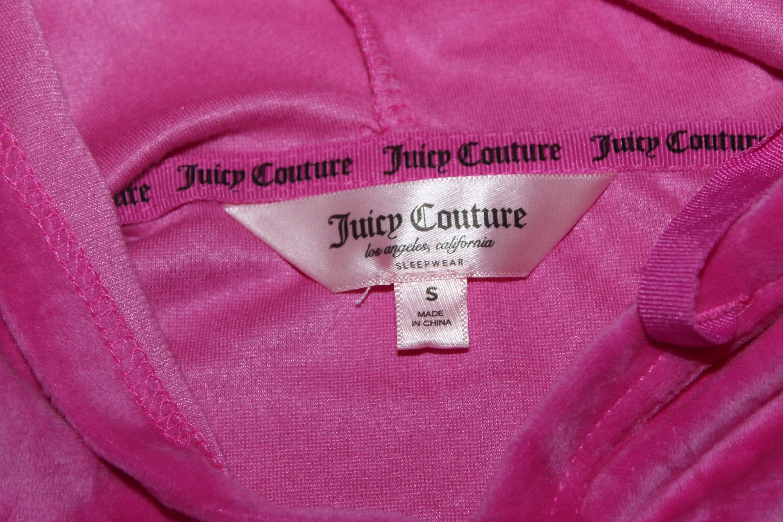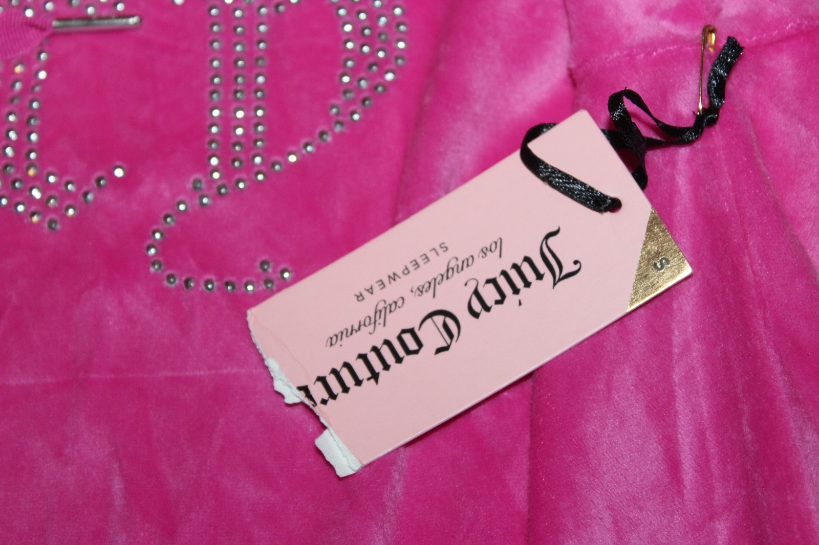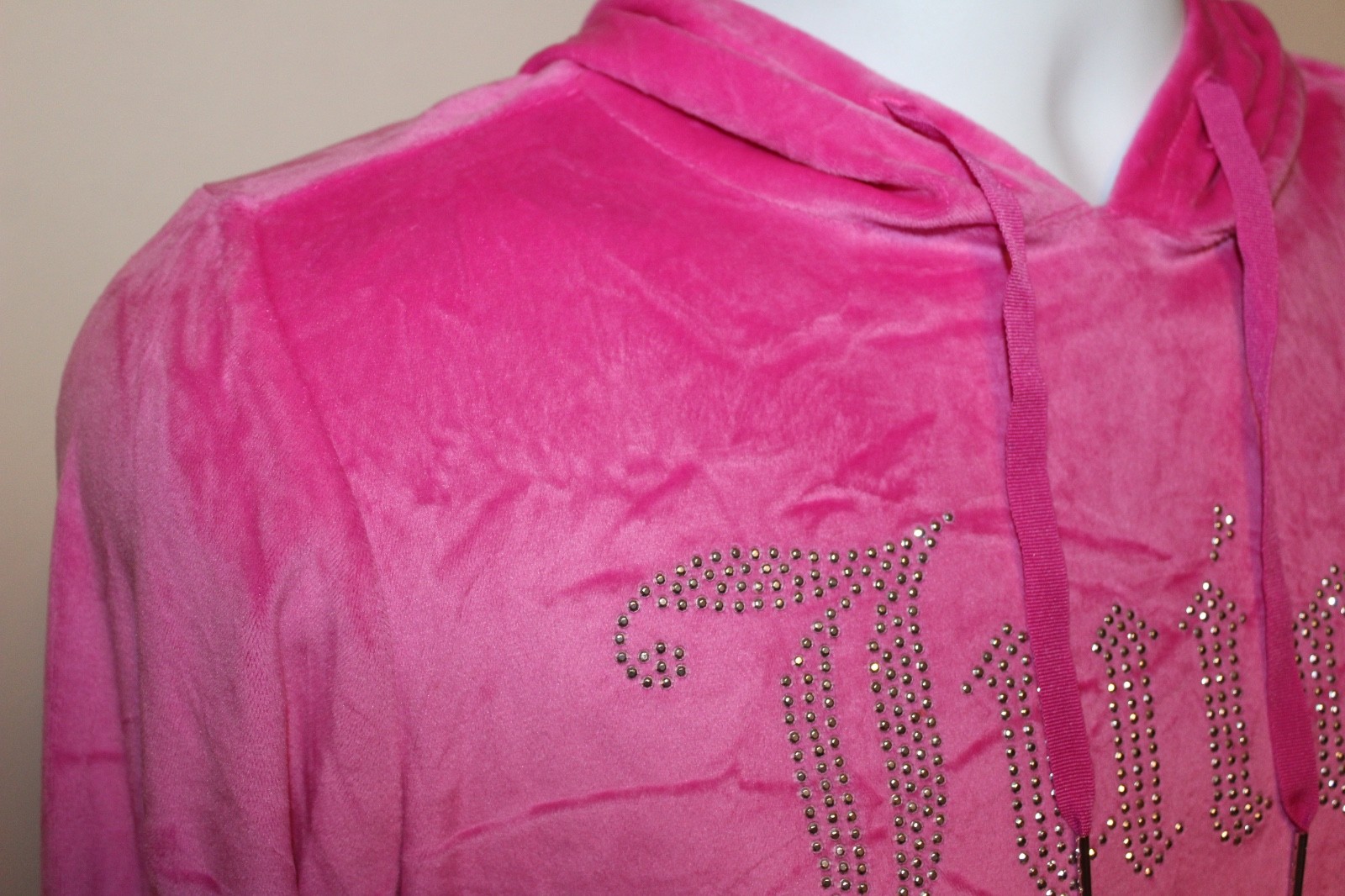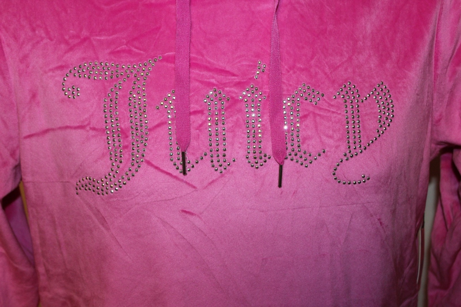 Juicy Couture Velour Hoodie Sleepwear Pink Rhinestone Logo Cropped Size S NEW