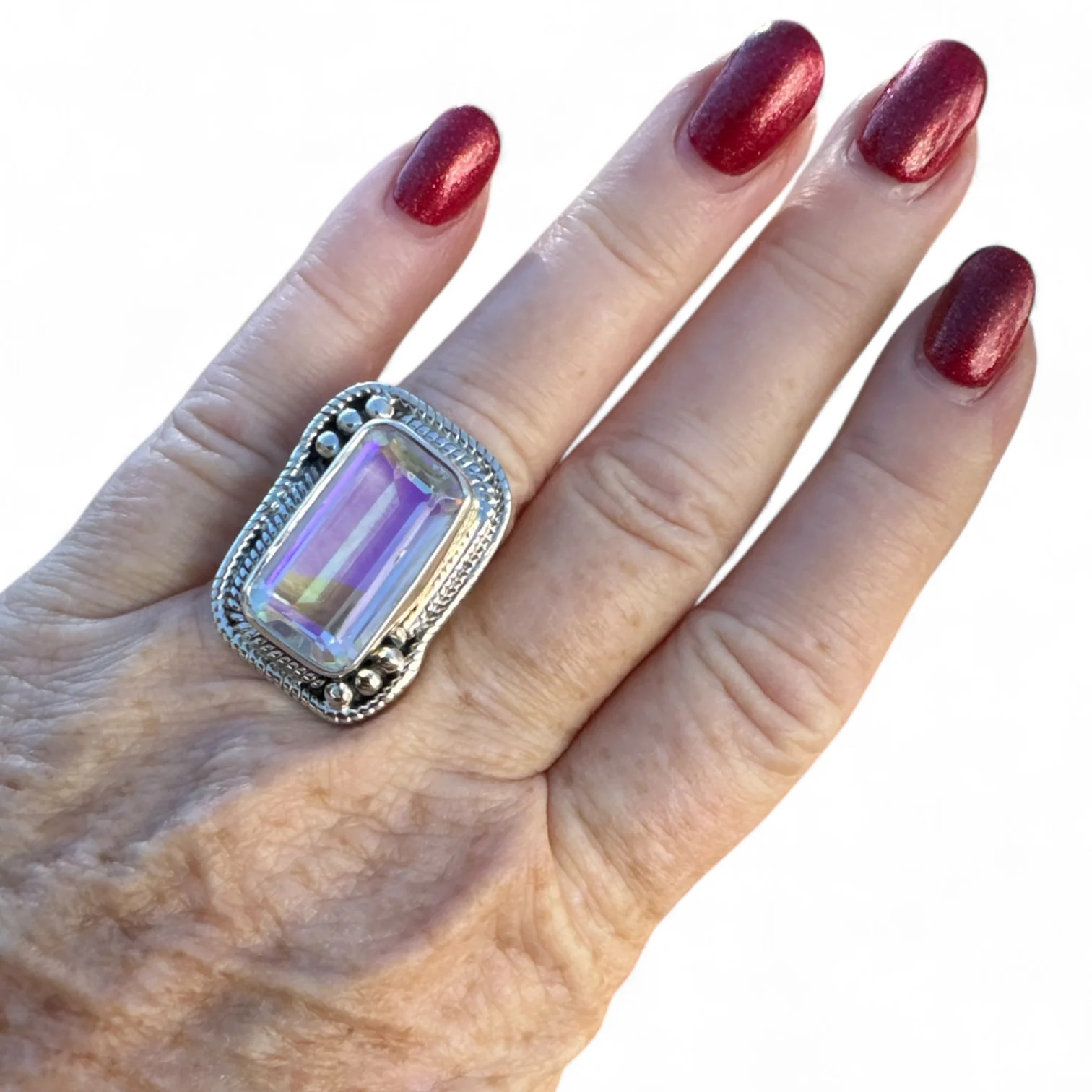 Mercury Mystic Topaz Solid 925 Sterling Silver Ring 7.5