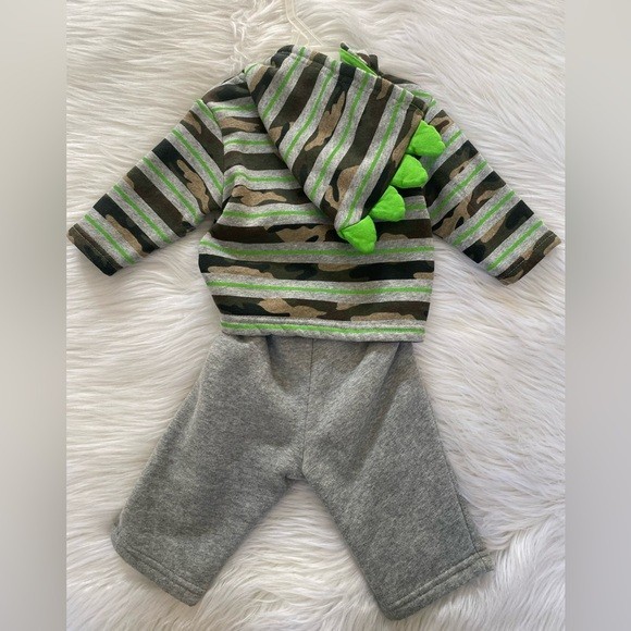 NEW w/Tag-The Children s PLACE Green/Gray Dinosaur Hoodie Sweat pant Set 3-6mths
