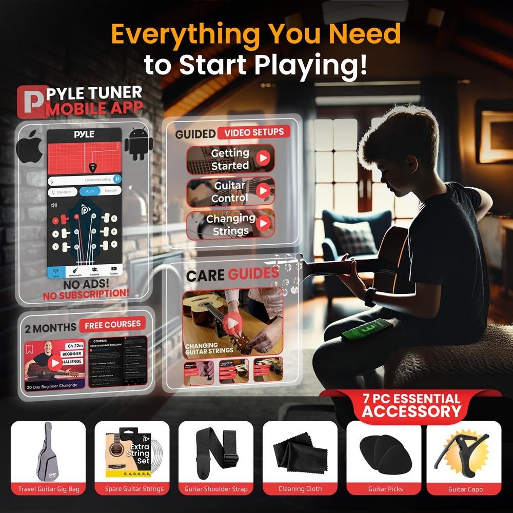 Pyle Beginners 6-String Acoustic Guitar - 41 Cutaway Body with Accessory Kit