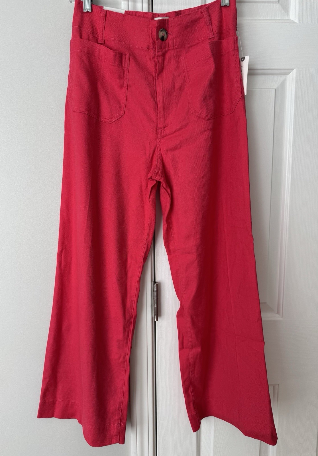 NWT Anthropologie Maeve The Colette Wide-Leg Cropped Linen Pants, Size 28