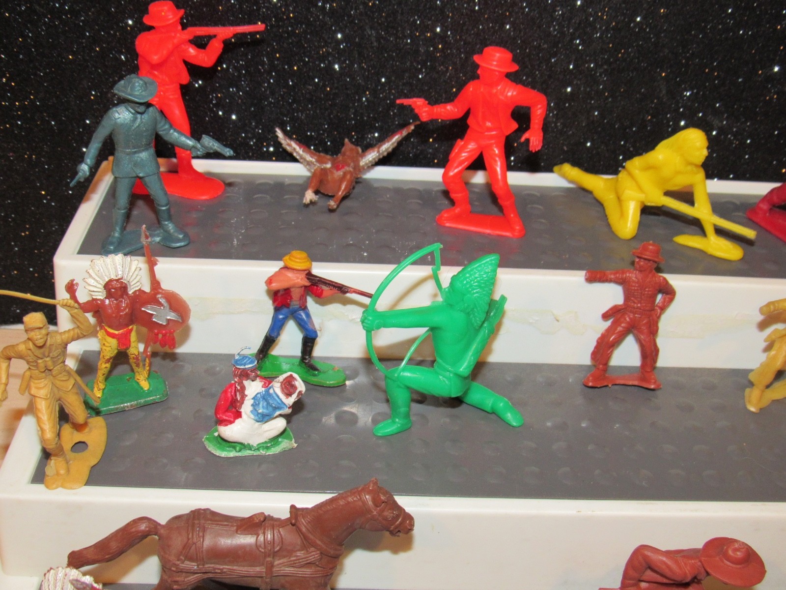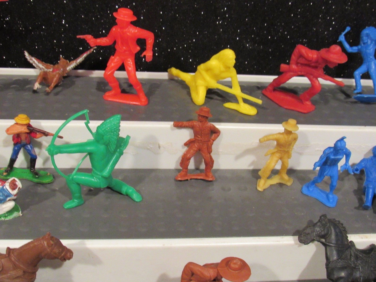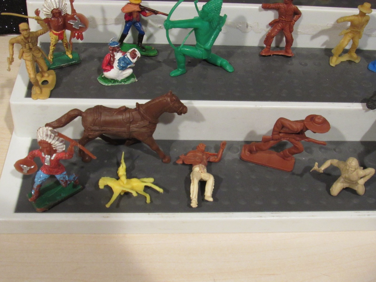 Lot Of 25 Plastic Vintage Cowboys Indians Marx MPC w/Horses