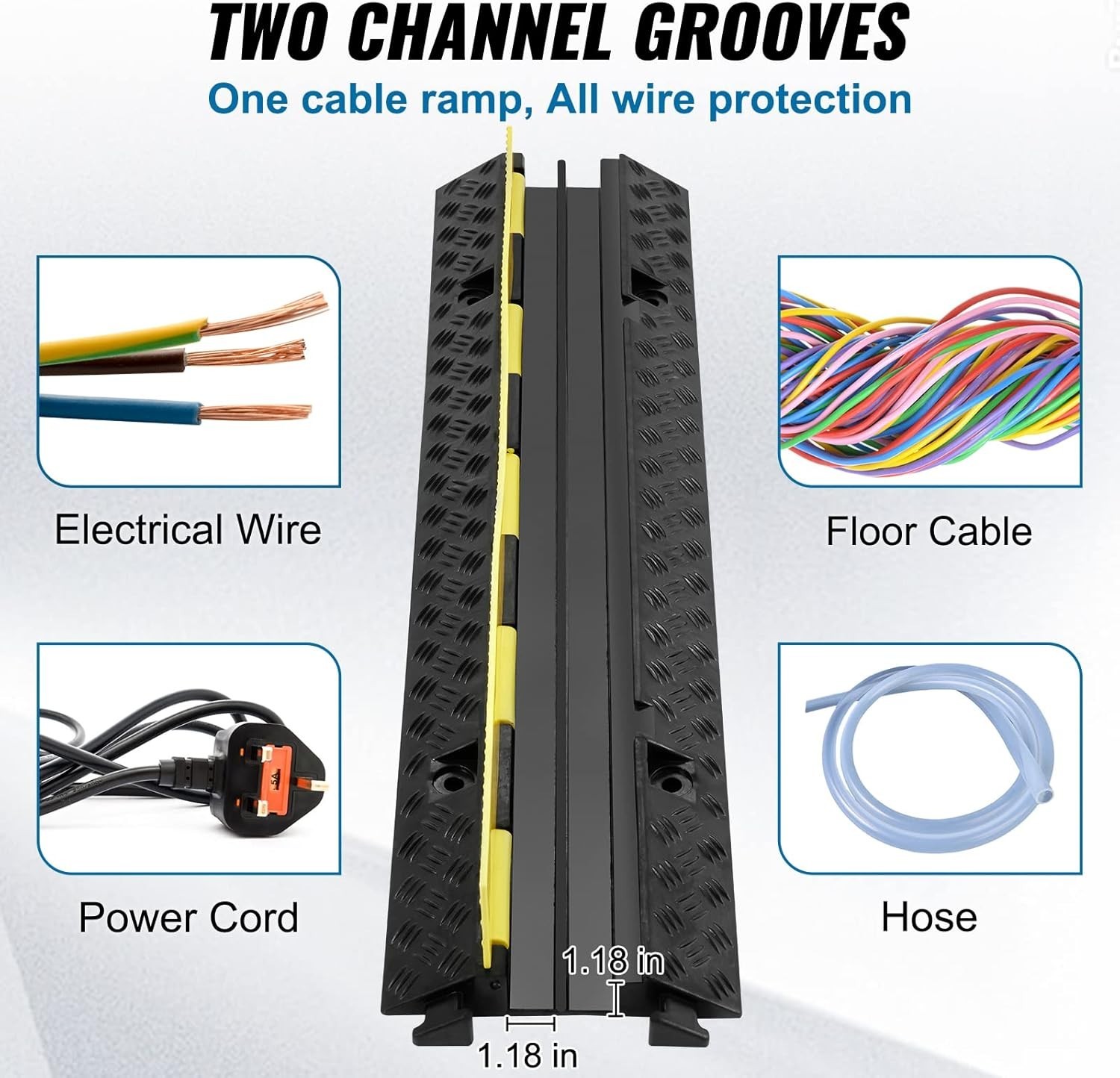 VEVOR 3 PCs 2 Channel Rubber Cable Protector Ramp, 12000 lbs/axle Capacity