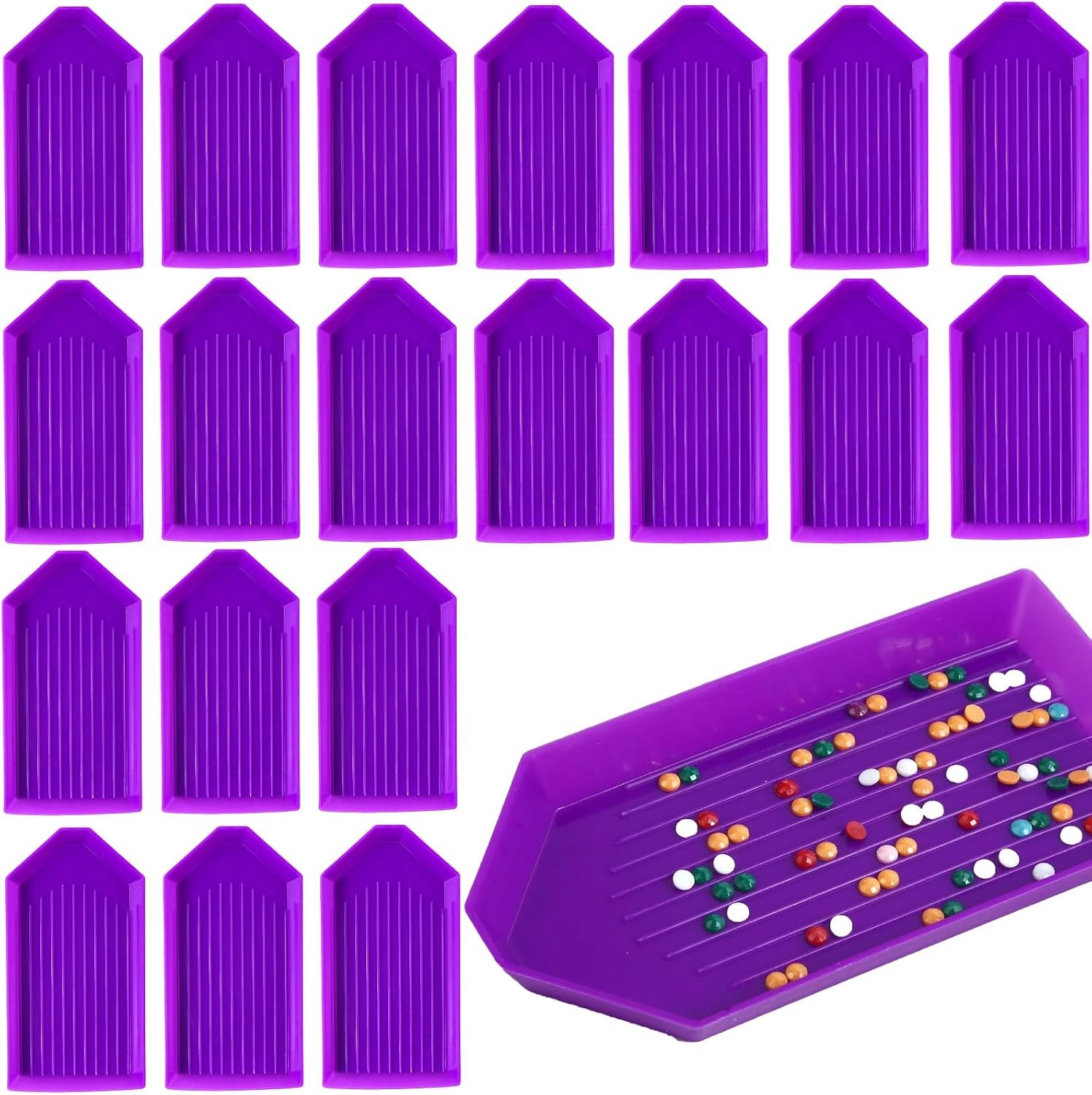 20pcs Purple Diamond Art Painting Trays, 3.5x1.9 Inch Purple Bead Sorting