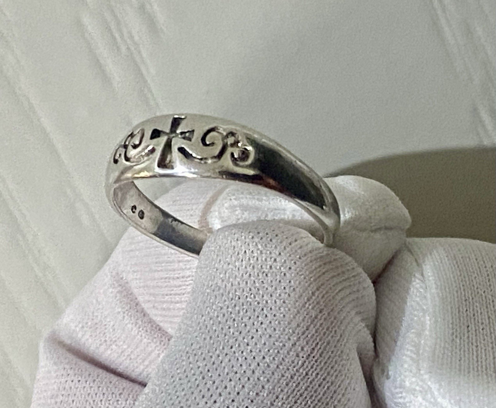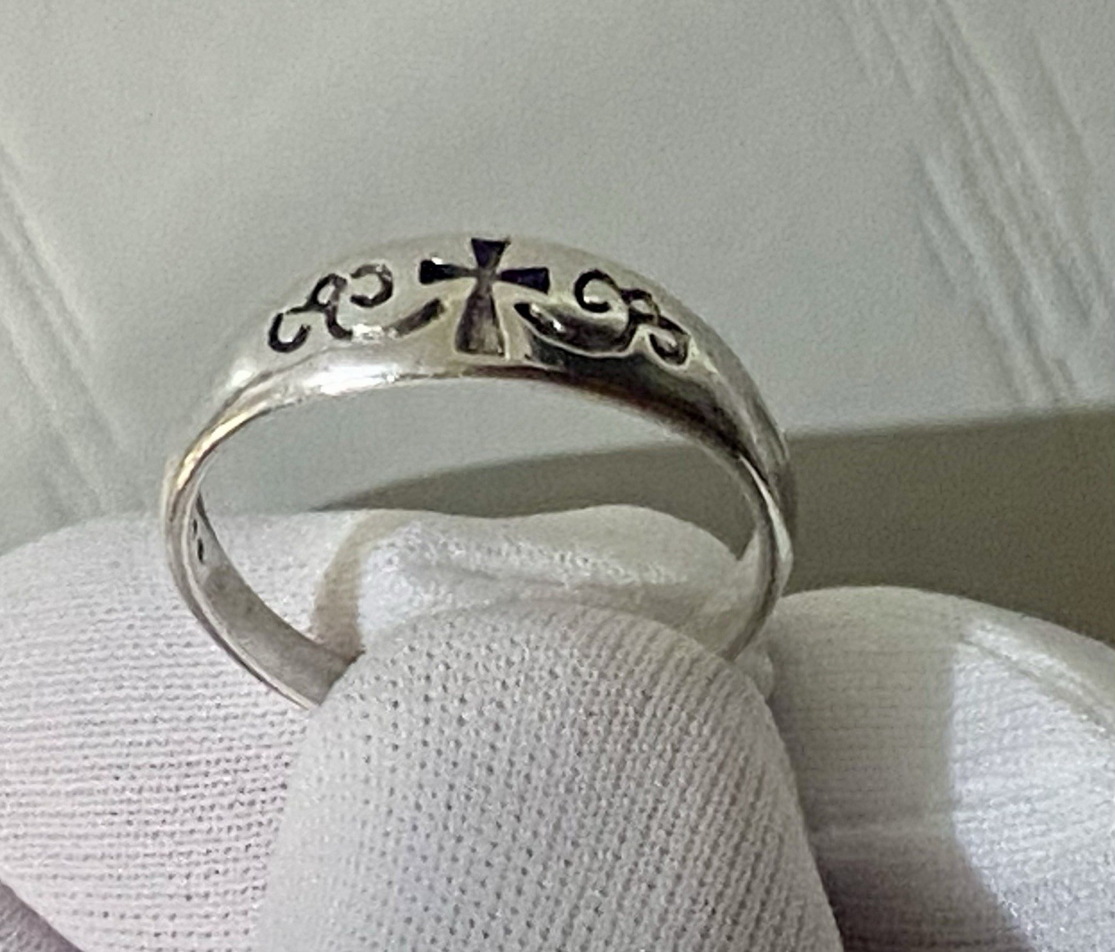 как выглядит Vintage Sterling Silver Cross Flower Band Ring Size 8.75 фото