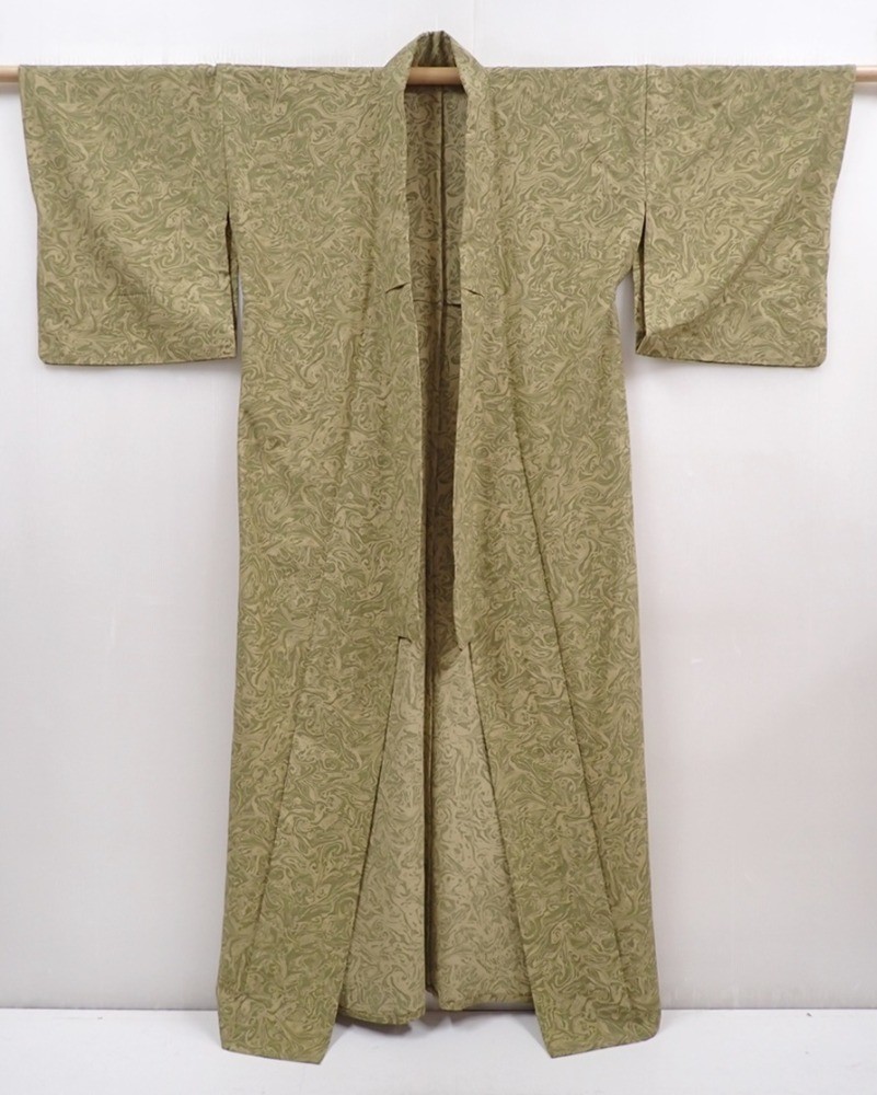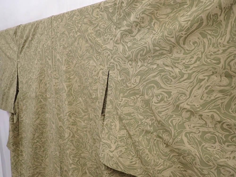 • 6001T08z530 Japanese Kimono Silk HITOE KOMON Suminagashi dyeing Dull olive