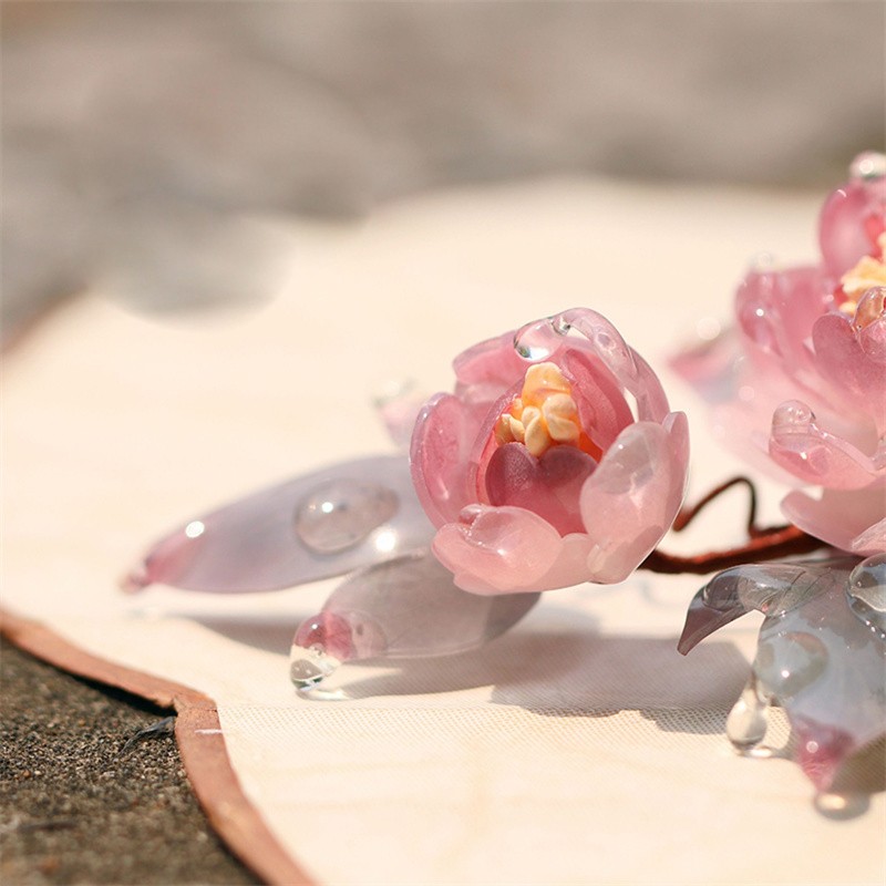 как выглядит Chinese Women Pink Rose Flower Hair Stick Hanfu U Shape Plastic Hair Accessory фото