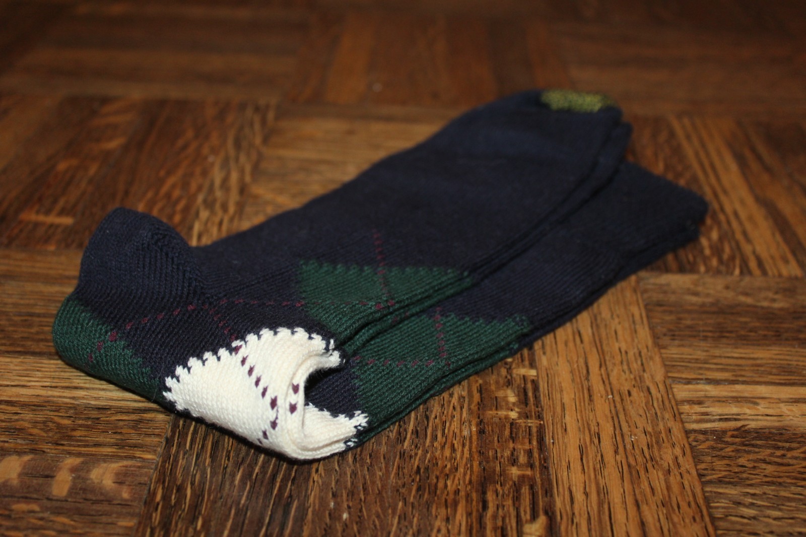 как выглядит Vintage Navy Blue Argyle Knee Socks with Reinforced Toes фото