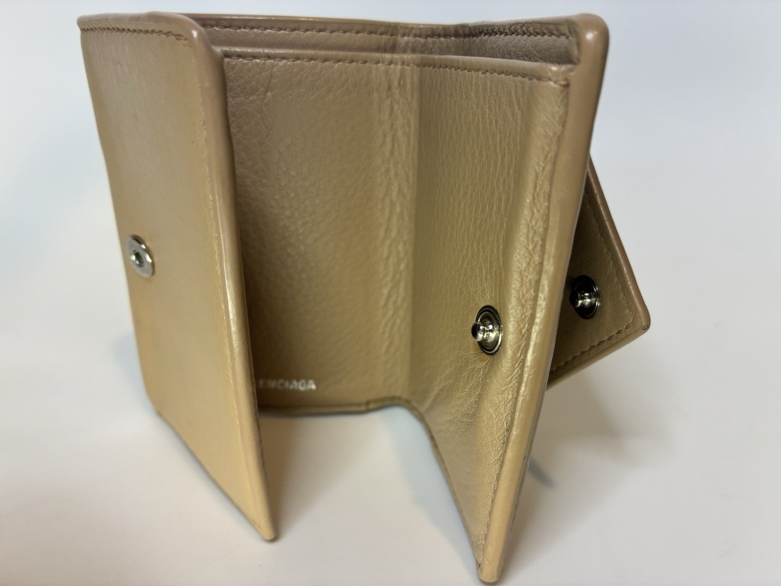 как выглядит Balenciaga Leather Trifold Wallet Brown Compact Coin 3 Card Holder фото