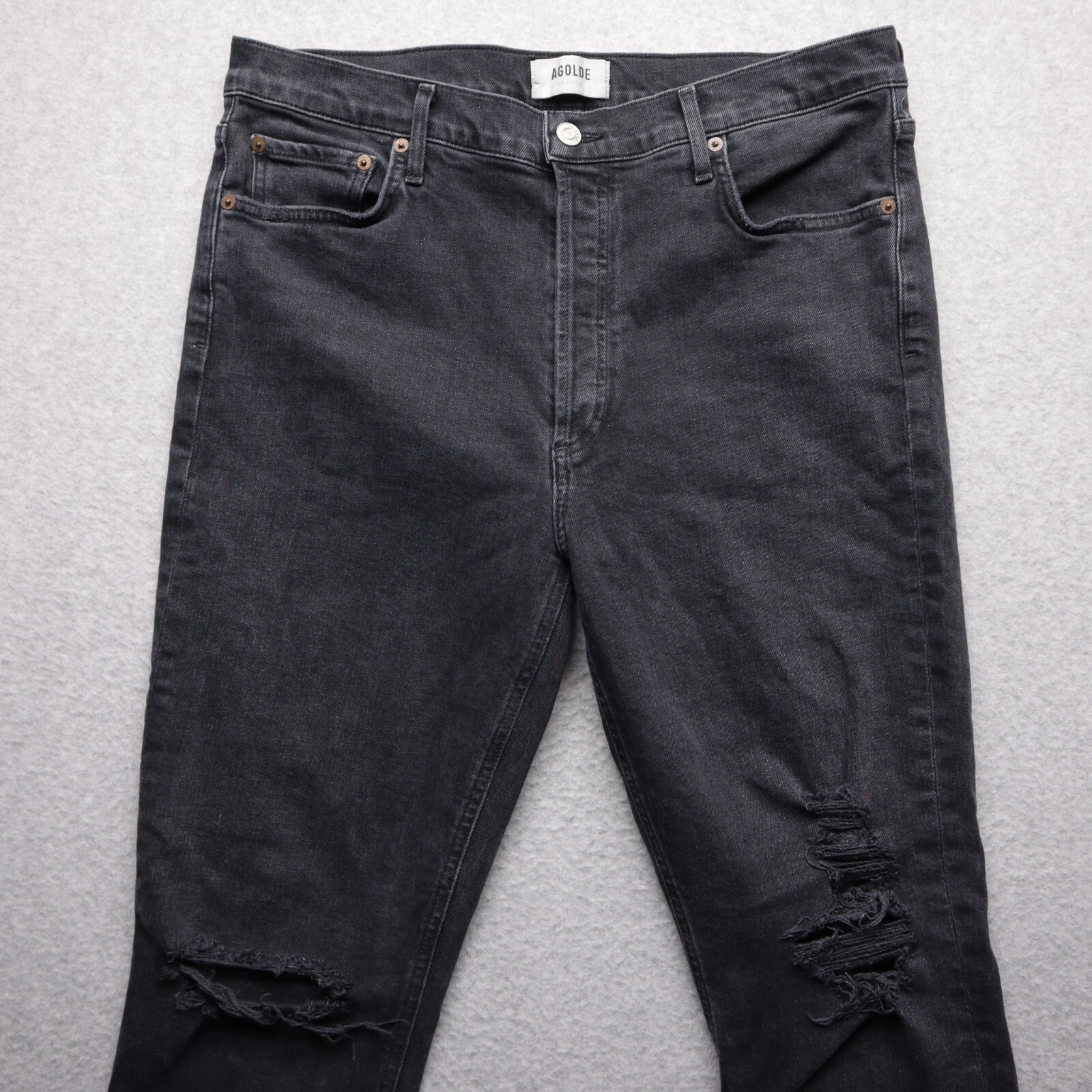 AGOLDE Jeans Womens 32 Nico Button Fly Black Wash Distressed High Rise Slim L27